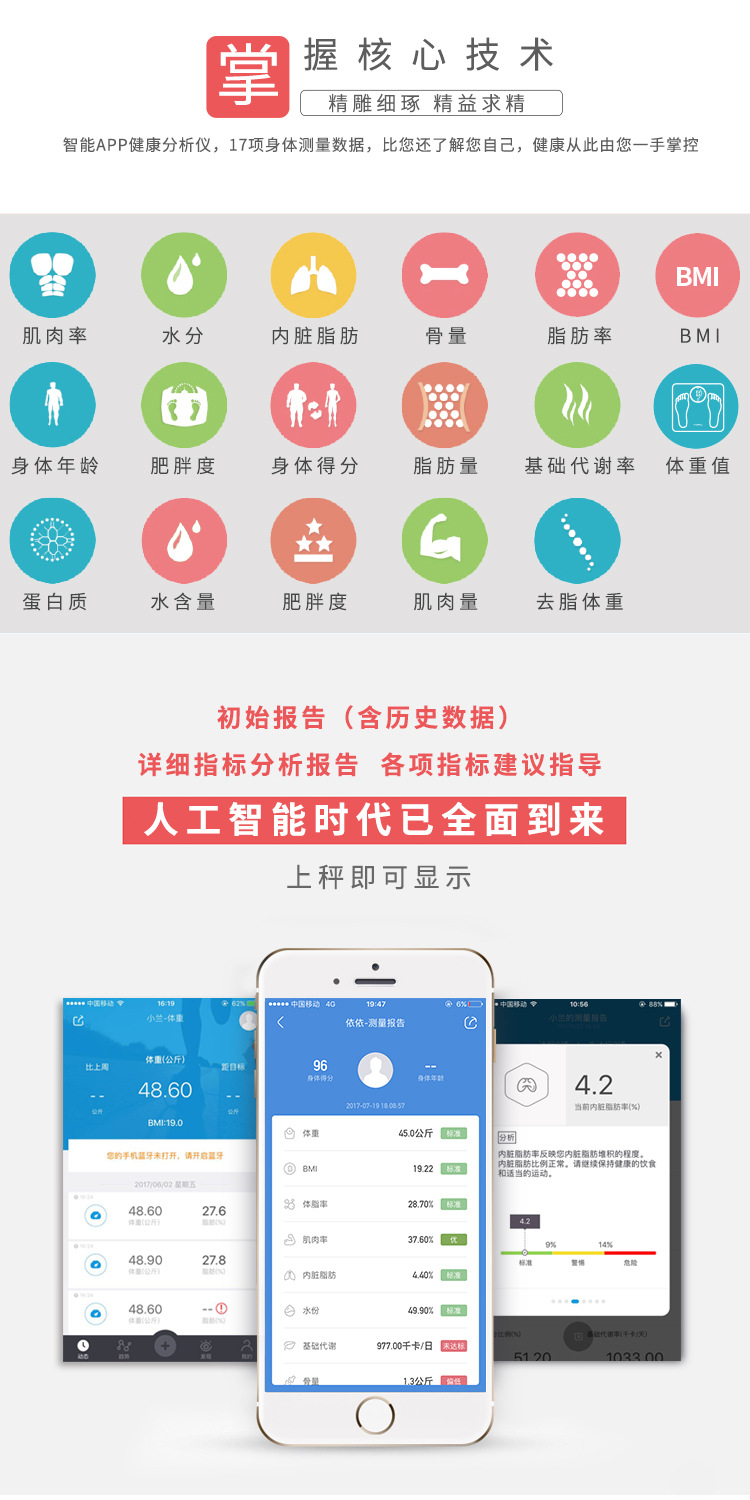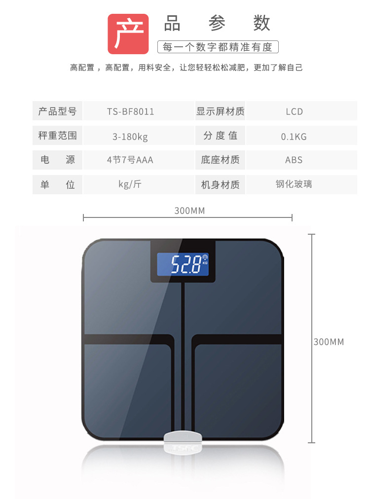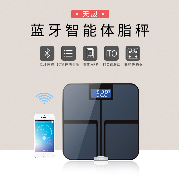 Tiansheng 스마트 체중 규모 모든 항목을 포함하는 다기능 체지방 규모 휴대 전화 블루투스 전자 규모 인체 규모 도매 대외 무역스토어 가기