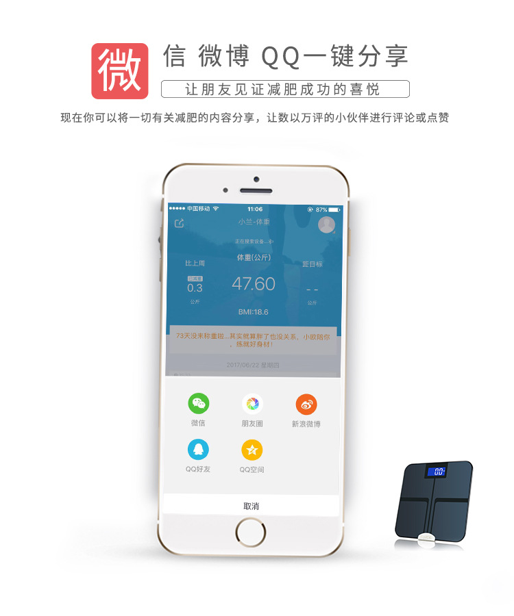Tiansheng 스마트 체중 규모 모든 항목을 포함하는 다기능 체지방 규모 휴대 전화 블루투스 전자 규모 인체 규모 도매 대외 무역