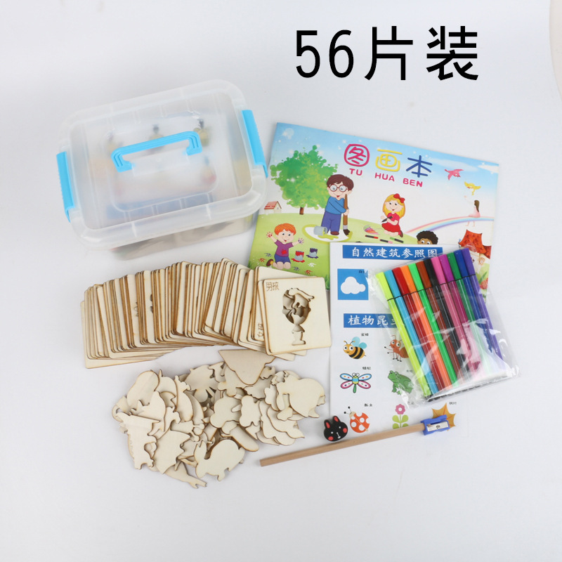 56片装:56个模型,涂色片56个,配水彩笔12根、铅笔1根、画本一份、参考图一份、带手柄收纳盒一个。发货情况-790