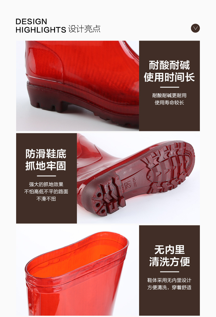 Pvc 남성용 높은 미끄럼 방지 장화 성인 노동 물 신발 차 컬러 비 안감 쉽게 청소 빨간 장화