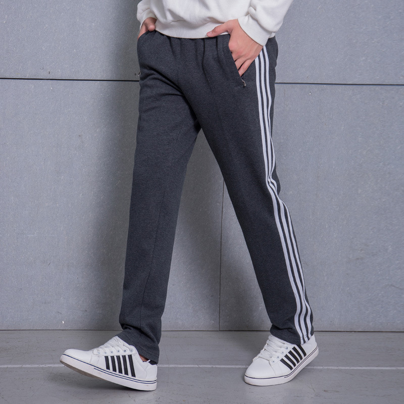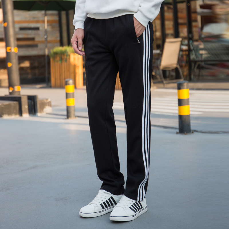 가을과 겨울 2023 새로운 기모 두꺼운 면 스트레이트 3 바 스포츠 바지 남자 스포츠 바지 한국 스타일 운동복스토어 가기