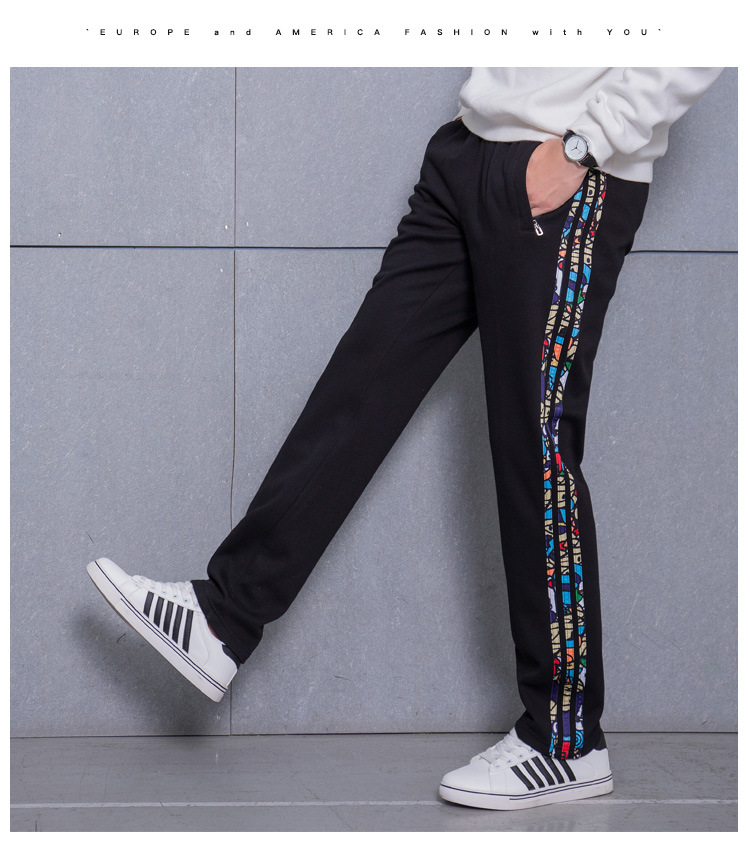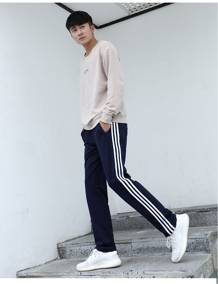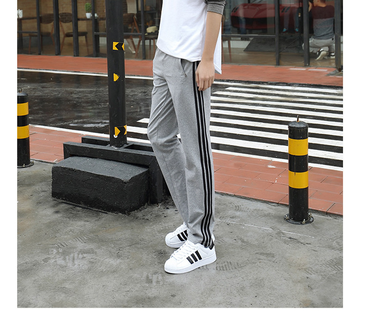 가을과 겨울 2023 새로운 기모 두꺼운 면 스트레이트 3 바 스포츠 바지 남자 스포츠 바지 한국 스타일 운동복
