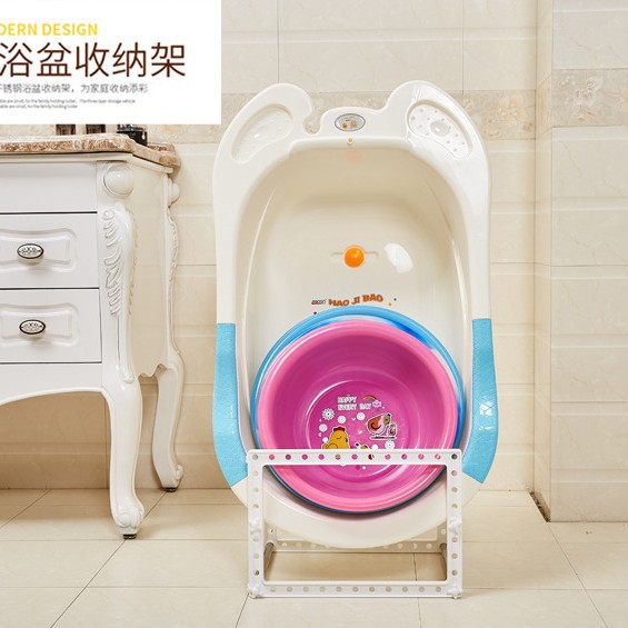 새로운 스테인레스 스틸 욕실 분지 랙 욕실 바닥 세면기 저장 랙 아기 목욕 분지 보관 랙