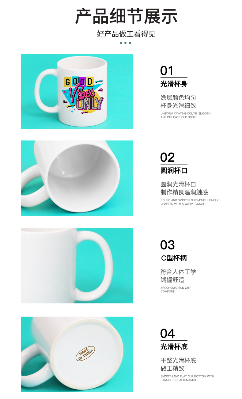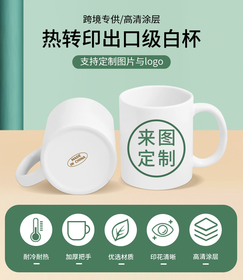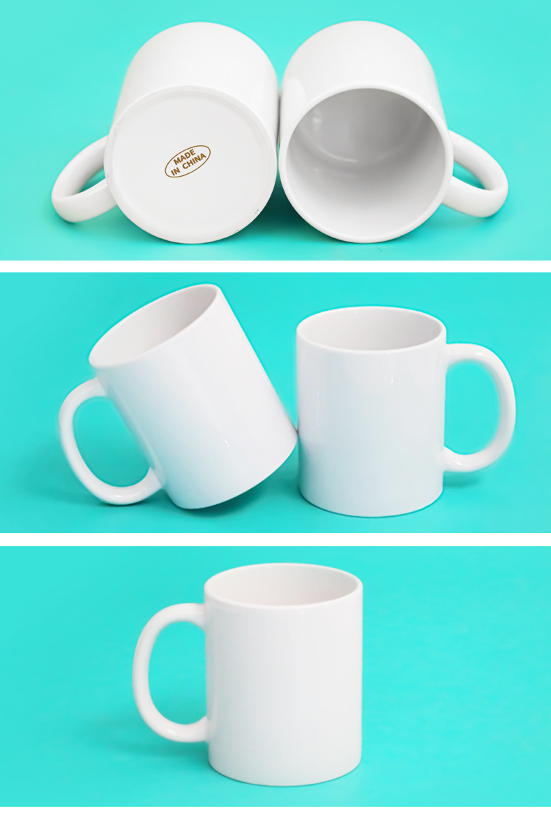 공장 도매 슈퍼 수출 화이트 컵 열 전송 코팅 빈 머그 골드 라벨 화이트 도자기 컵은 식기 세척기를 통과 할 수 있습니다스토어 가기