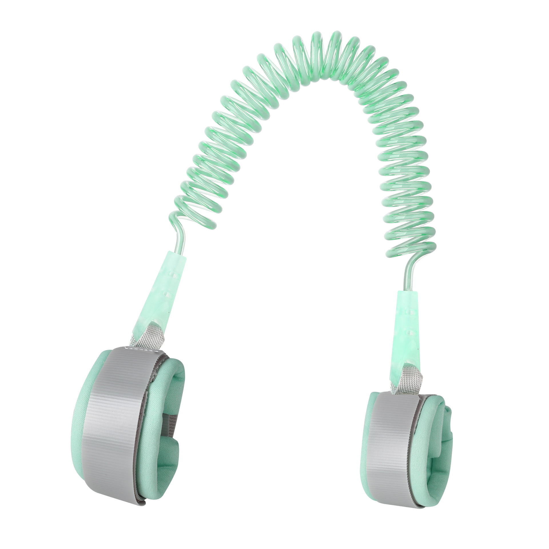 此系列产品目前主推三色:浅蓝、浅粉、浅绿,每色三个规格1.5米、2米、2.5米,锁是钥匙锁、手环和绳了的连接是加宽防剪D形扣,绳子是包芯反光弹簧绳,内置49根钢丝,此款产品钢丝外面加了一层不透明的材料,又增加了一层反光条,兼顾以上两款特色,不仅白天起来美观,晚上看起来效果也很好而且更安全。