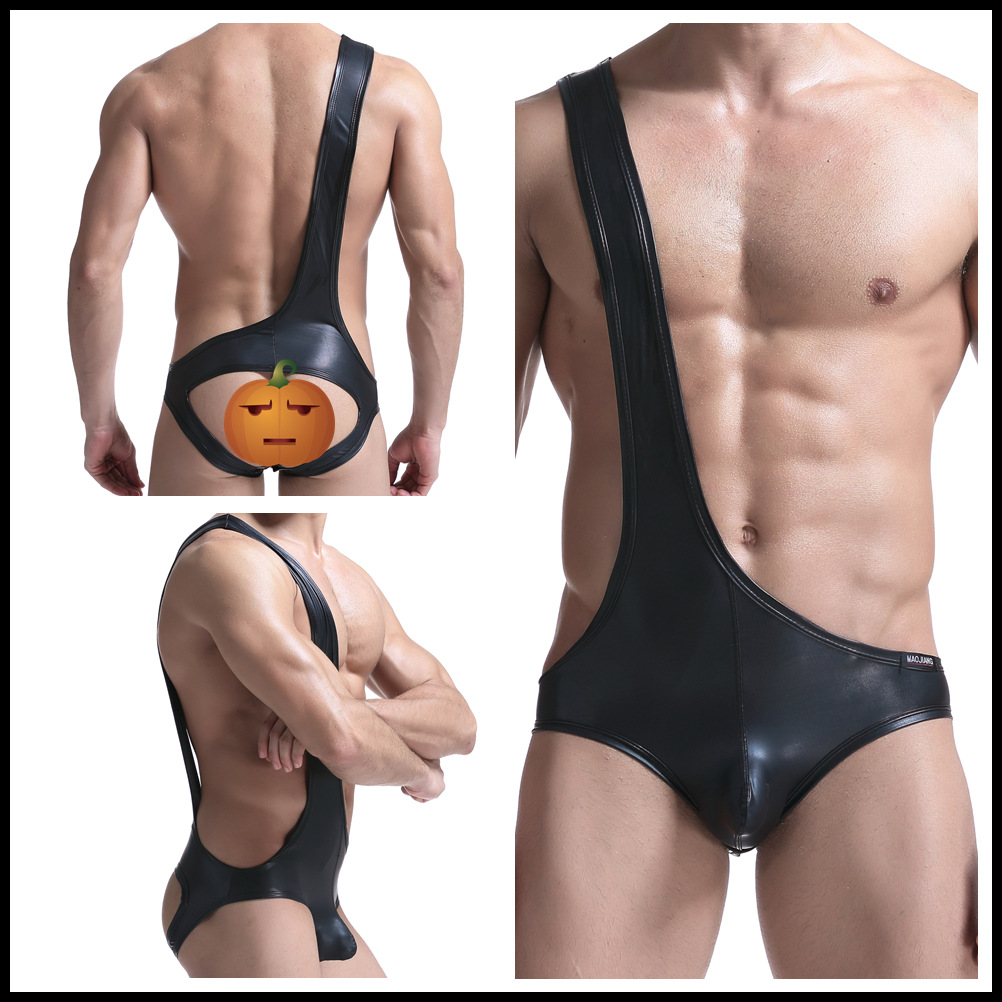 레슬링 스타일 남성 속옷, 인조 가죽/PU 가죽 바지, 뒷면 오픈형 속옷, U자형 디자인 속옷