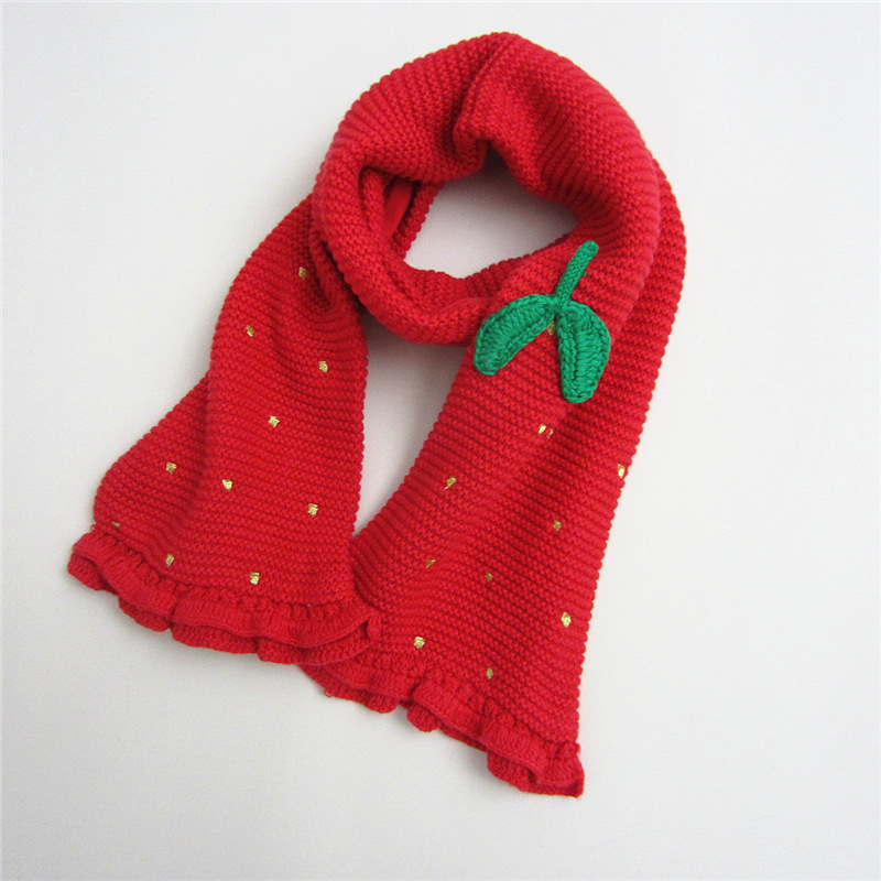 후크 그린 리프 골드 라인 자수 레드 딸기 소녀 니트 스카프 따뜻한 스카프 아기 스카프 소녀 스카프