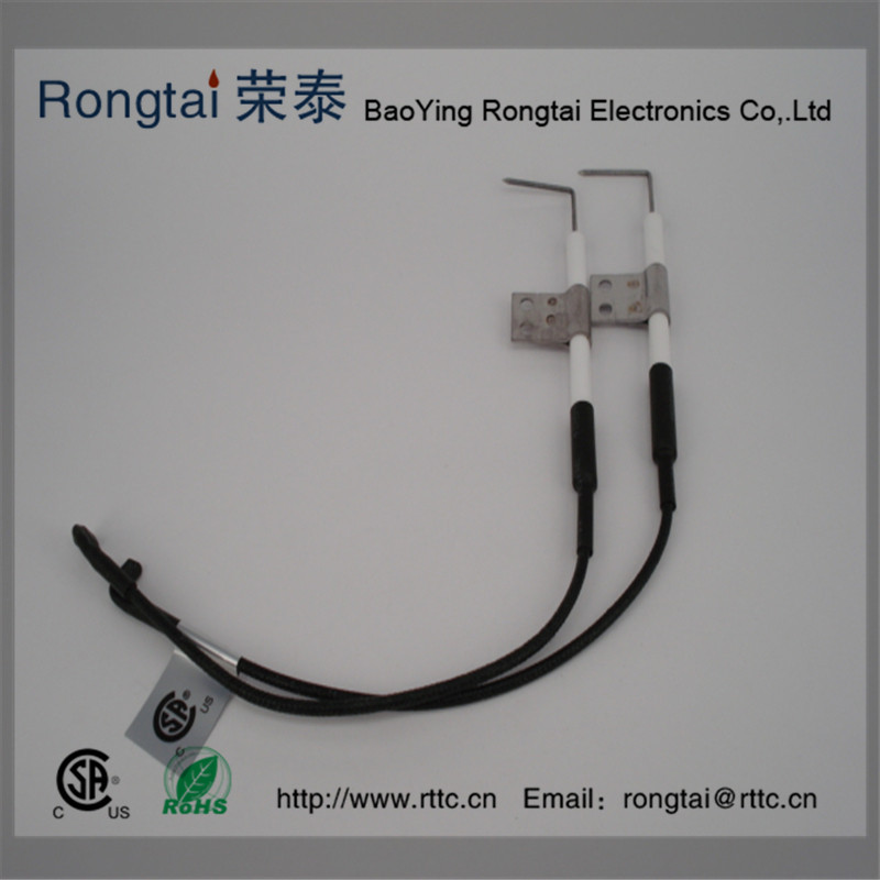 本公司是一家专业研制、生产及销售1、各类燃气设备用陶瓷点火针、点火电极、点火线组等的厂家。公司产品通过CSA、ROSH认证。产品广泛应用于液化石油气、天然气以及类似用途的热水器、灶具、炉头、燃气烤炉,壁炉,取暖器,缺氧熄火保护装置(ODS),微电发生器、长明火(母火组)、灶具配件,烟具,其他炊具厨具配件等,公司积累了多年的生产陶瓷点火电极的经验,拥有现代化高效能陶瓷点火电极生产线,建成同行业中装备、技术、管理先进的点火电极制造车间。2、燃气具高温热面点火器,规格有:12V、24V、110V等。点火器:1TO1,1TO2,1TO3,1TO4,耐电压18-25KV。 所用材料均为耐高温高压,如电线有PTFE、PFA等、型号UL3573、UL3304、UL3257、UL1911、UL1659、UL10362等,陶瓷为Al2O395%,电极则采用Ni80Cr20镍铬丝、0Cr25Al5、0Cr21Al6铁铬铝和国外进口的KANTHAL D、KANTHAL AMP耐高温电热丝、日本进口的YSS-SYTT点火针芯极材料等,耐温超过1100-1500度不等
