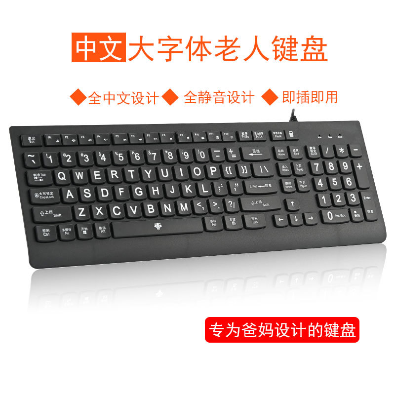 大字符中文键盘解决老人操作方便,再也不用戴眼镜, 对眼睛没有杀伤力,有效保护眼睛,同时也不建议老人长时间玩电脑哟!