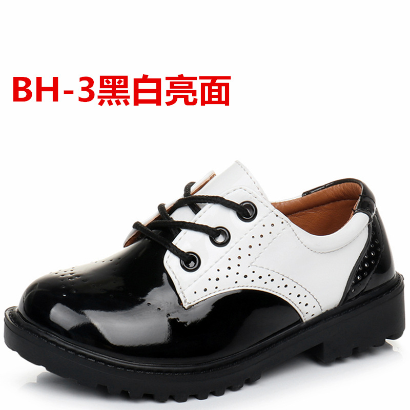 어린이 가죽 신발 어린이 신발 학교 학생을위한 흑백 신발 신발 끈이있는 한국식 영국 캐주얼 신발스토어 가기