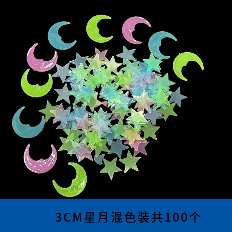 ★每袋都配有双面胶贴,当你躺在床上,四周都是星星包围着你,感觉是睡在云端,星星月亮在对你眨眼,够浪漫吧。使用夜光粉制成,环境越黑,装饰贴越亮。产品出口欧美等地,符合标准。