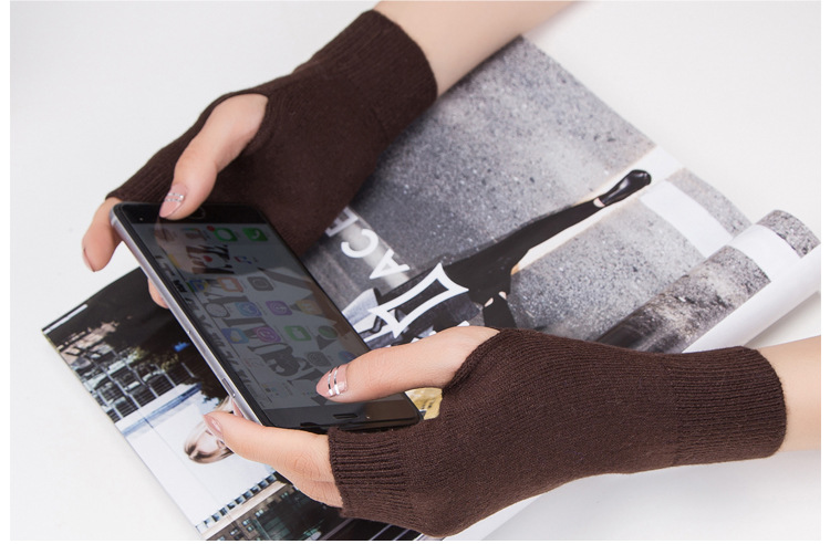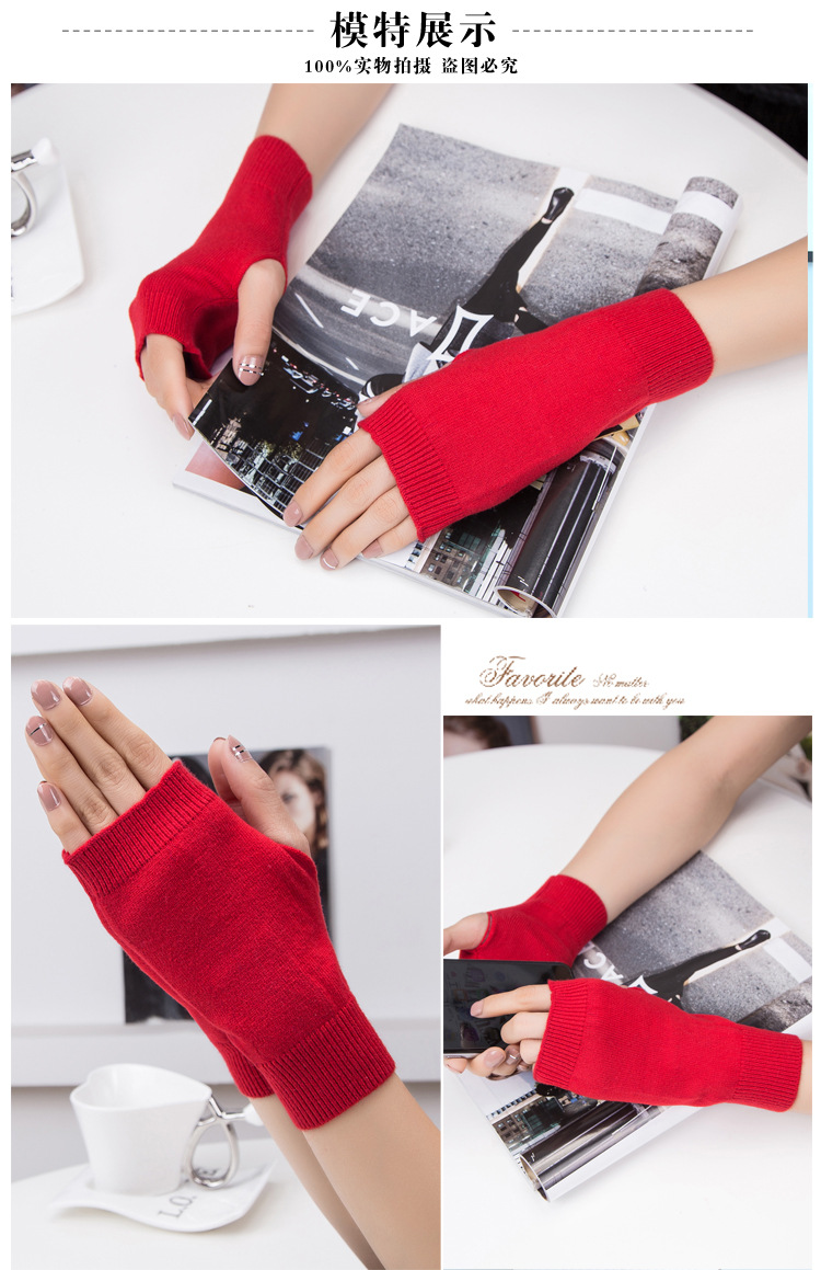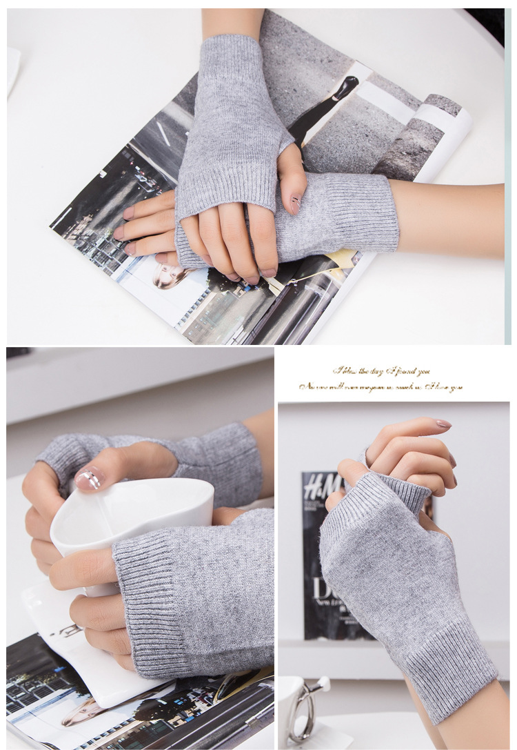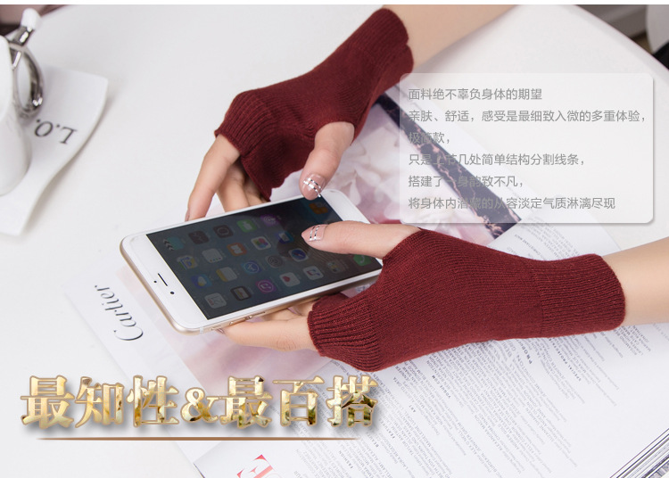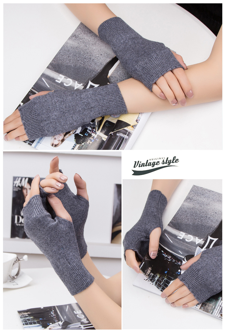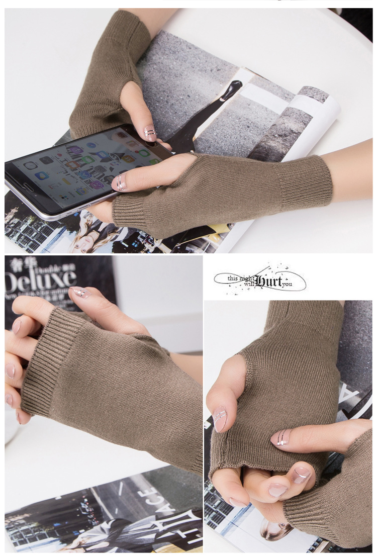 가을과 겨울 울 반 손가락 남녀 공용 장갑 사무실 따뜻한 장갑을 쓰는 학생을위한 니트 라인 짧은 손가락스토어 가기