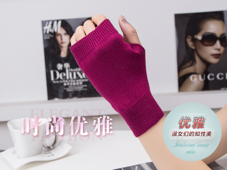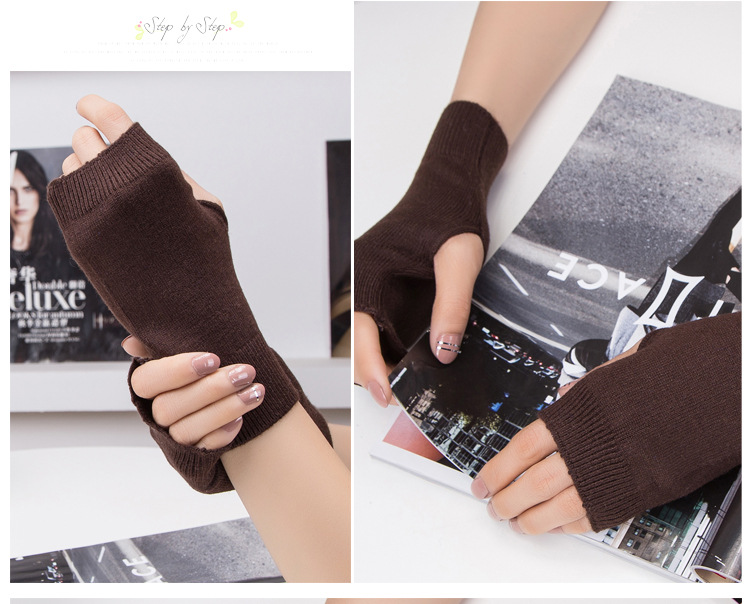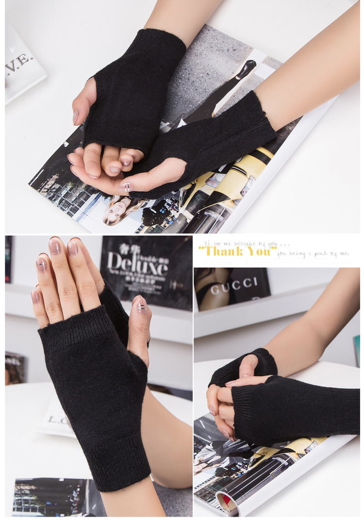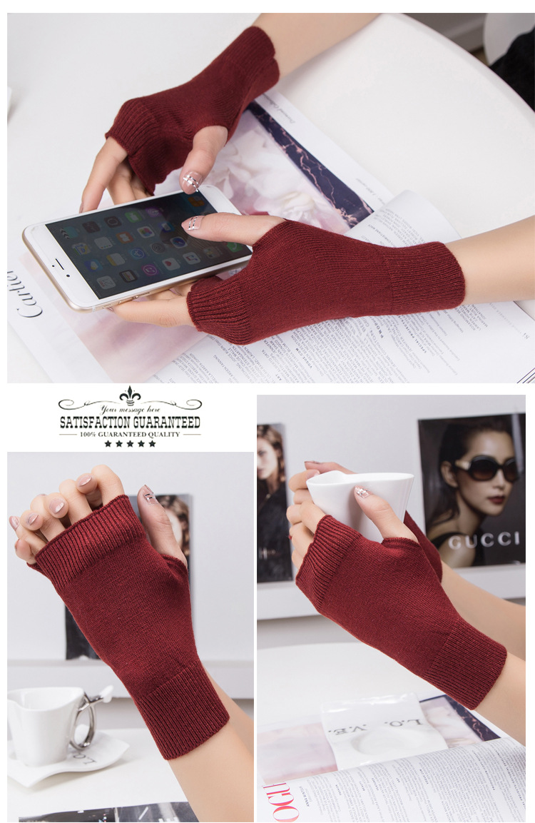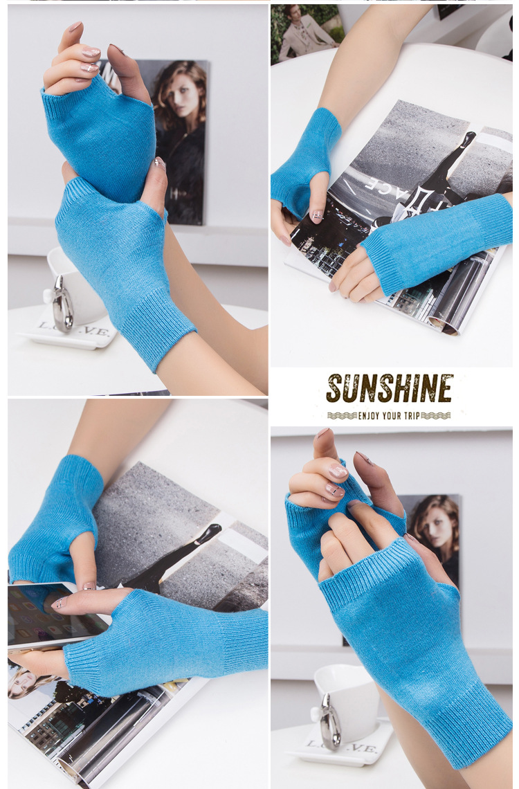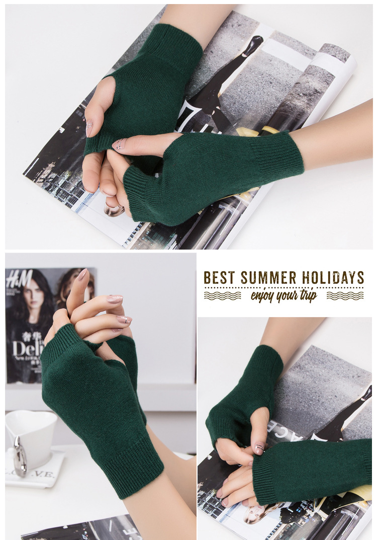 가을과 겨울 울 반 손가락 남녀 공용 장갑 사무실 따뜻한 장갑을 쓰는 학생을위한 니트 라인 짧은 손가락스토어 가기