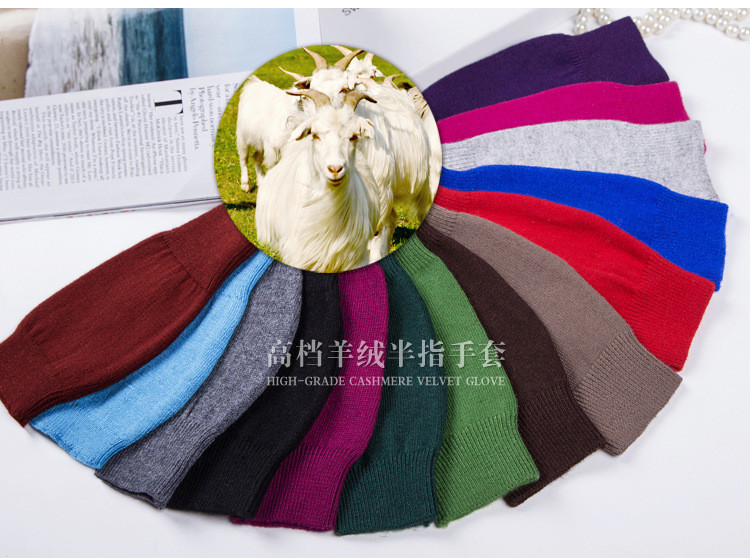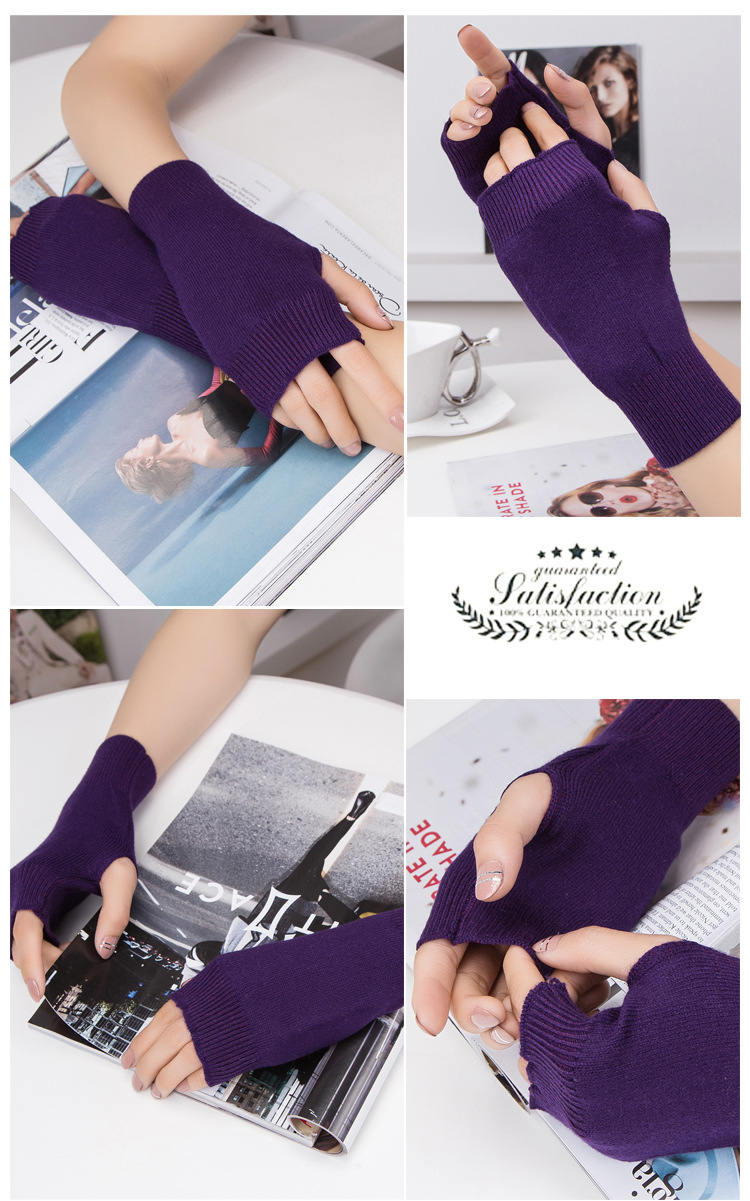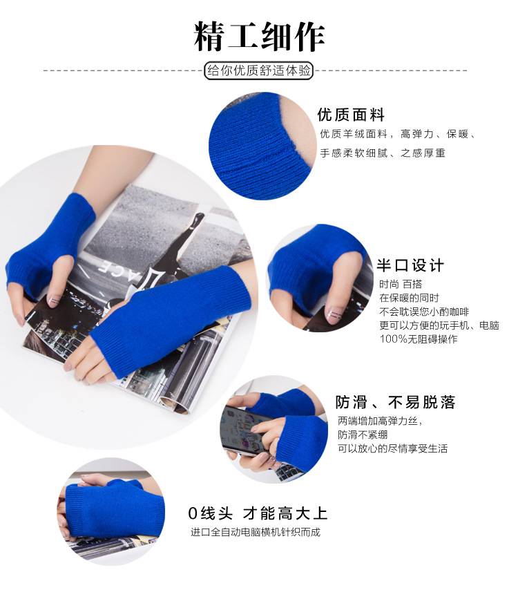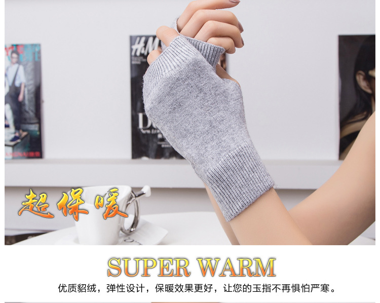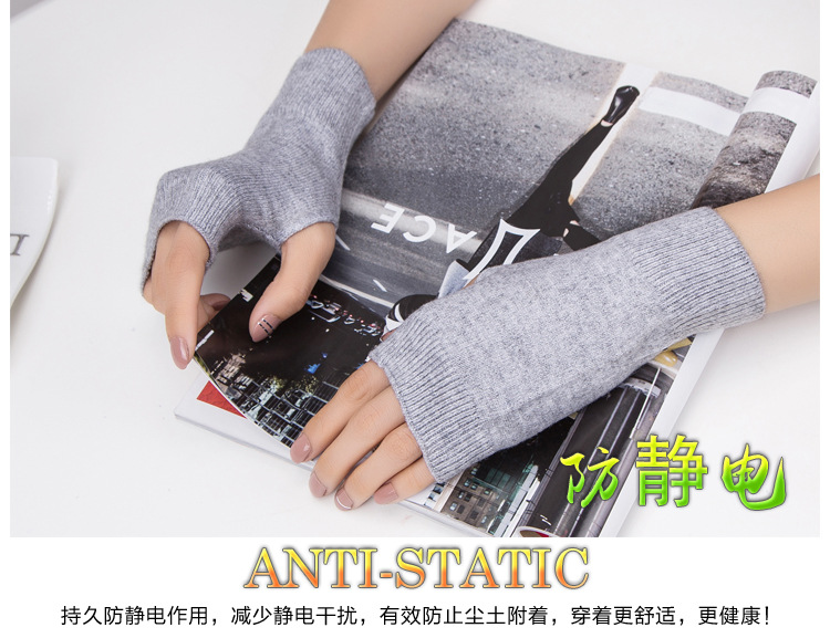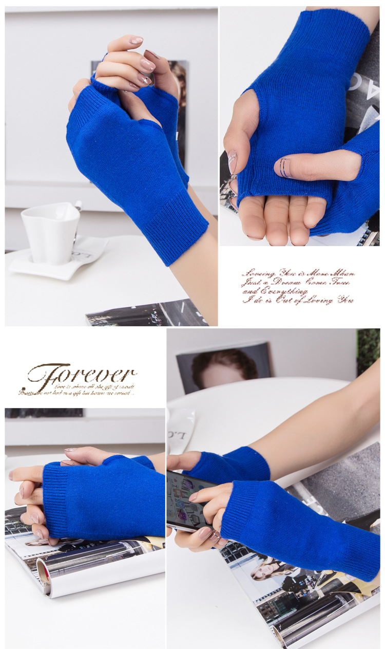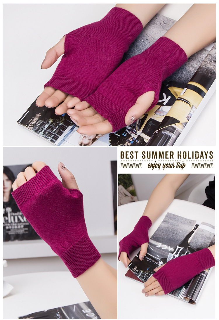 가을과 겨울 울 반 손가락 남녀 공용 장갑 사무실 따뜻한 장갑을 쓰는 학생을위한 니트 라인 짧은 손가락스토어 가기