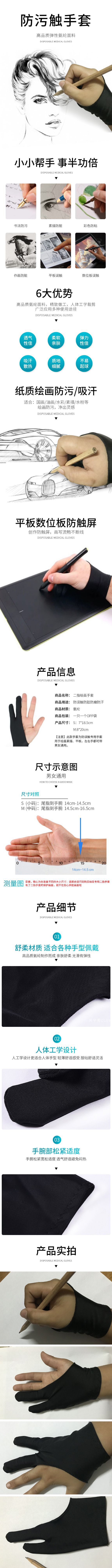 두 손가락 드로잉 장갑 그래픽 태블릿 우발적 인 터치 방지 특수 장갑 쓰기 및 그리기 장갑 두 손가락 장갑