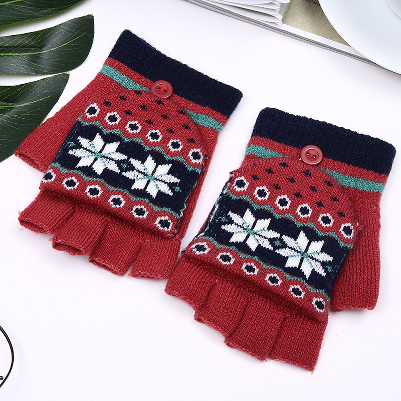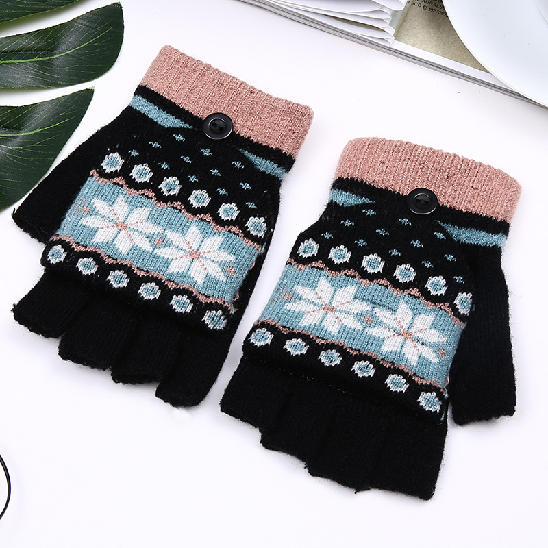 숙녀 플립 이중 목적 쓰기 니트 장갑 여성 겨울 반 손가락 귀여운 눈송이 따뜻한 양모 장갑 머리카락의 세대