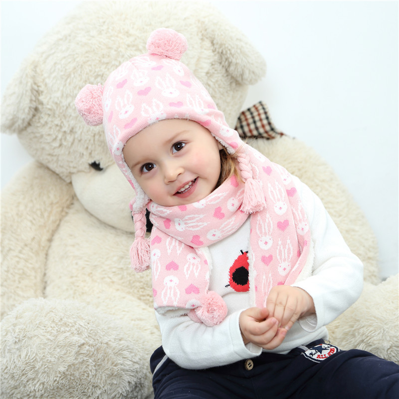 2 색 사랑 토끼 자카드 소녀 소년의 니트 스카프 아기의 니트 양모 스카프 두꺼운 따뜻한 스카프스토어 가기