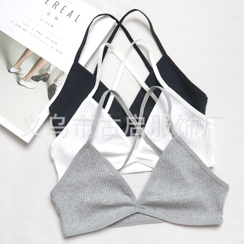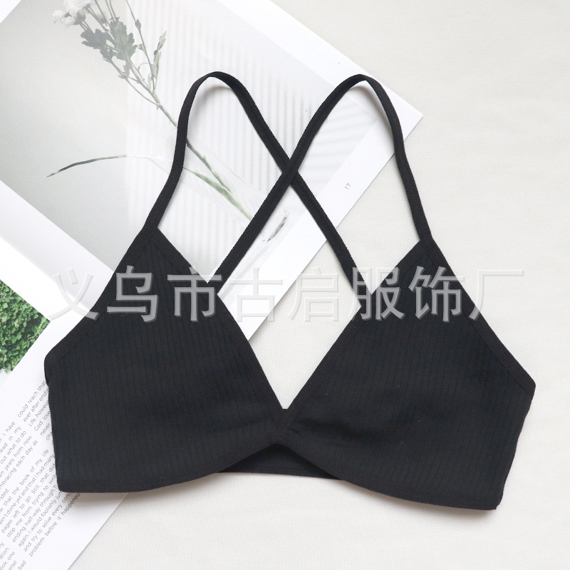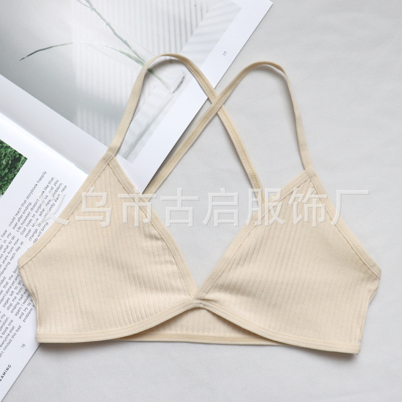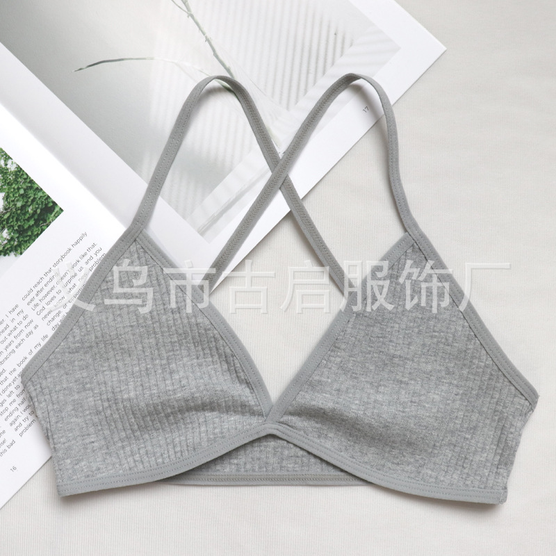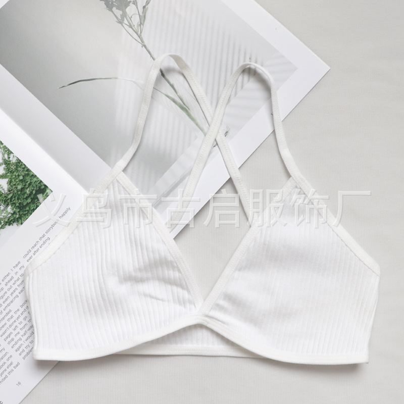 편안한 초박형 컵 코튼 걸 속옷 깊은 V 섹시한 링리스 크로스 백 브라