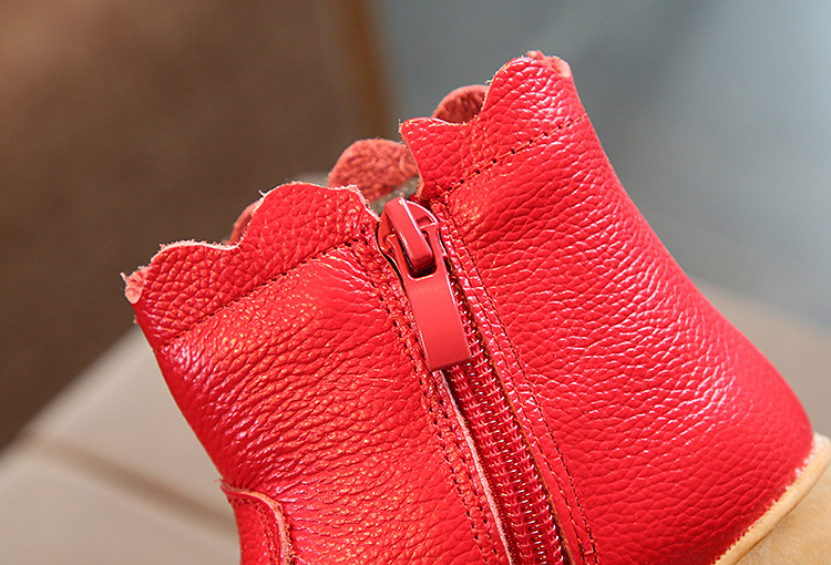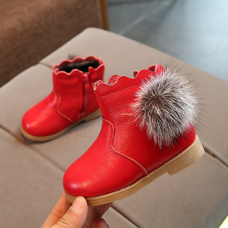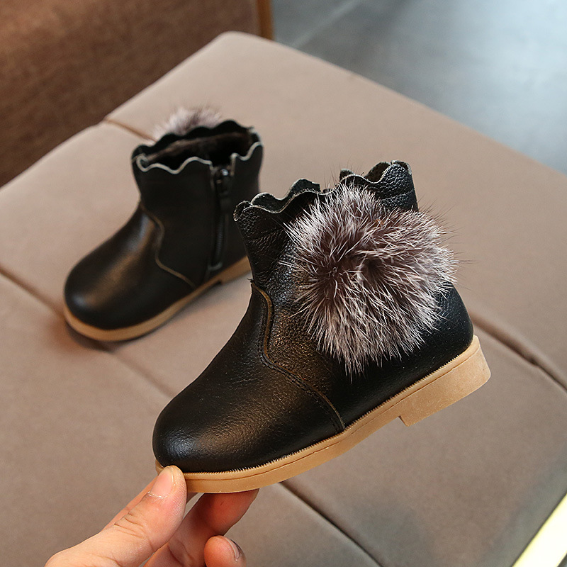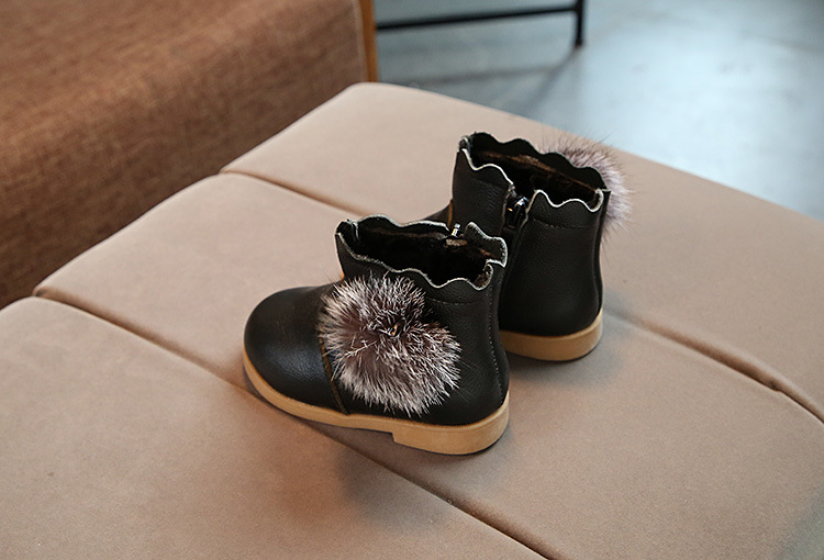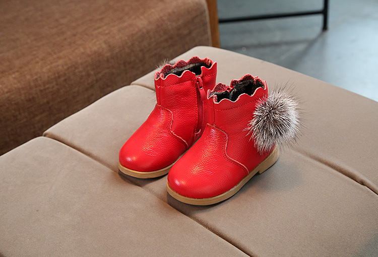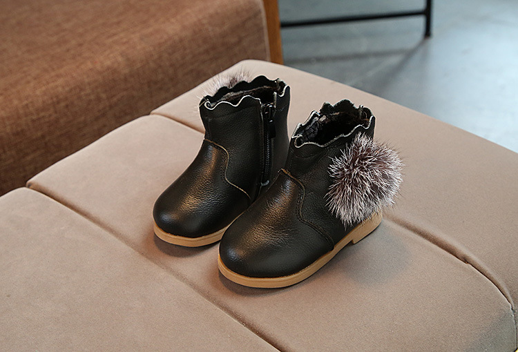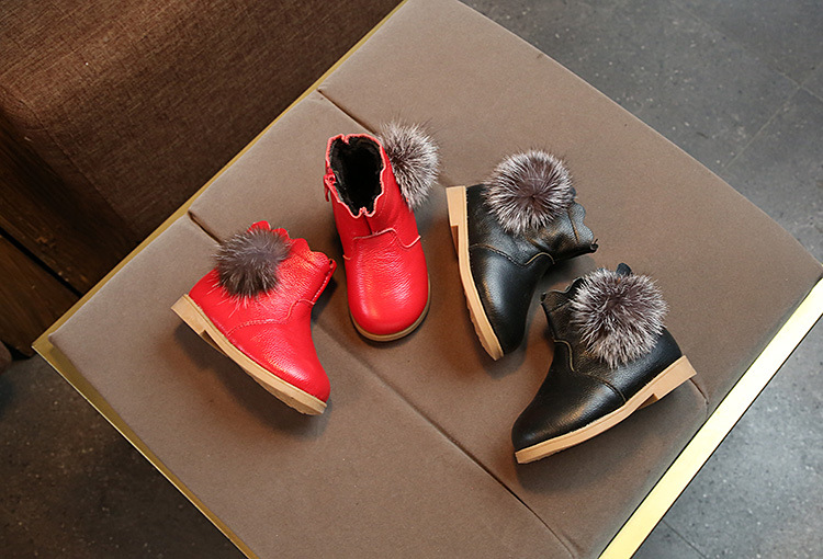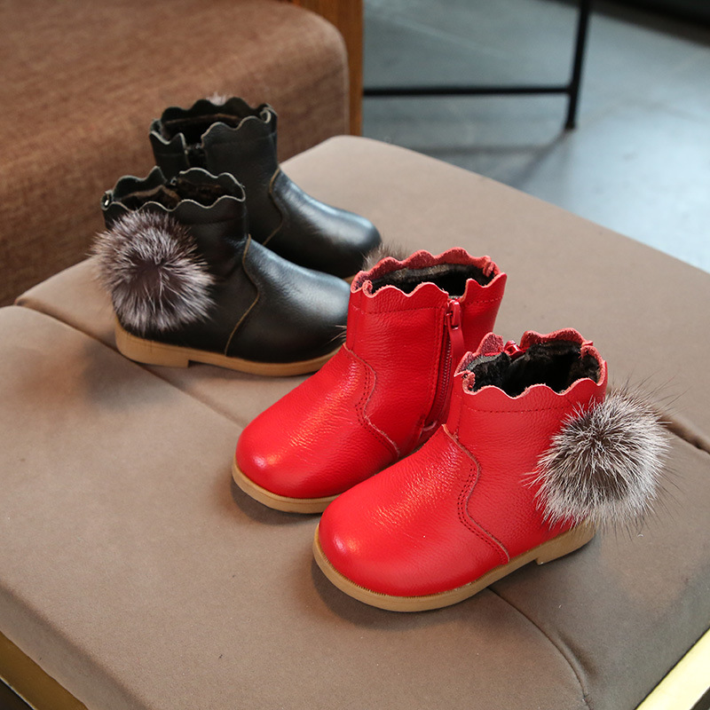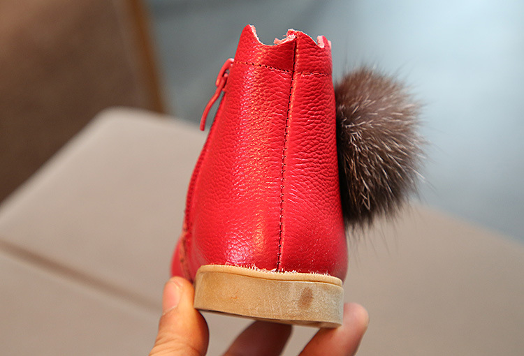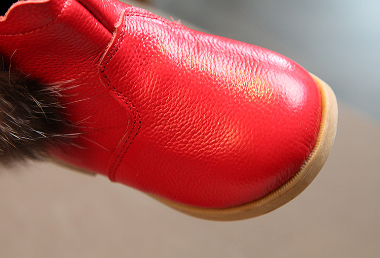 1002#女童皮鞋兔毛短靴真皮加绒靴子流苏马丁靴