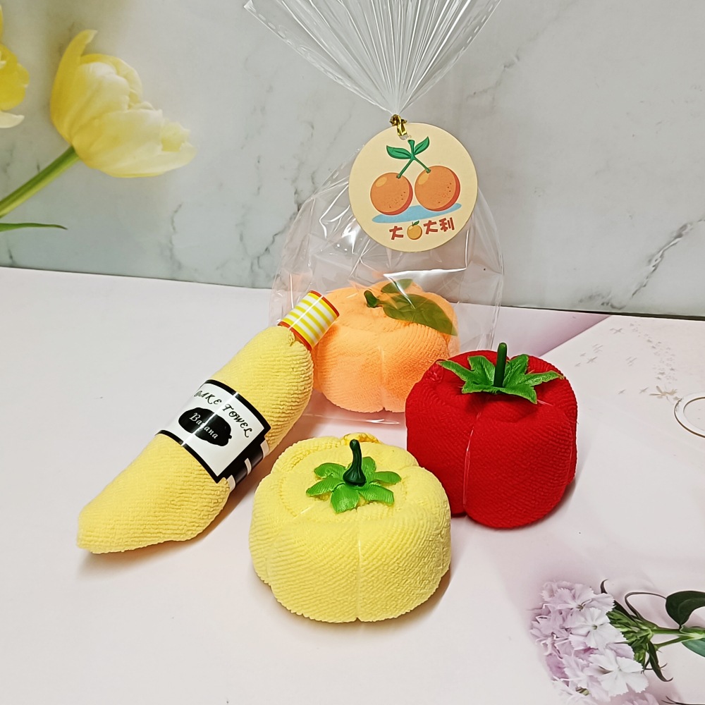 과일과 야채 모양 타월 호박 수박 바나나 토마토 칠리 케이크 타월이 로고를 만들 수 있습니다