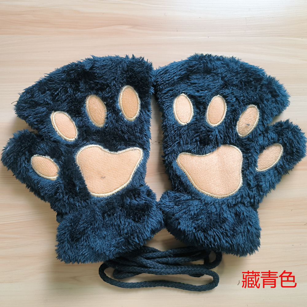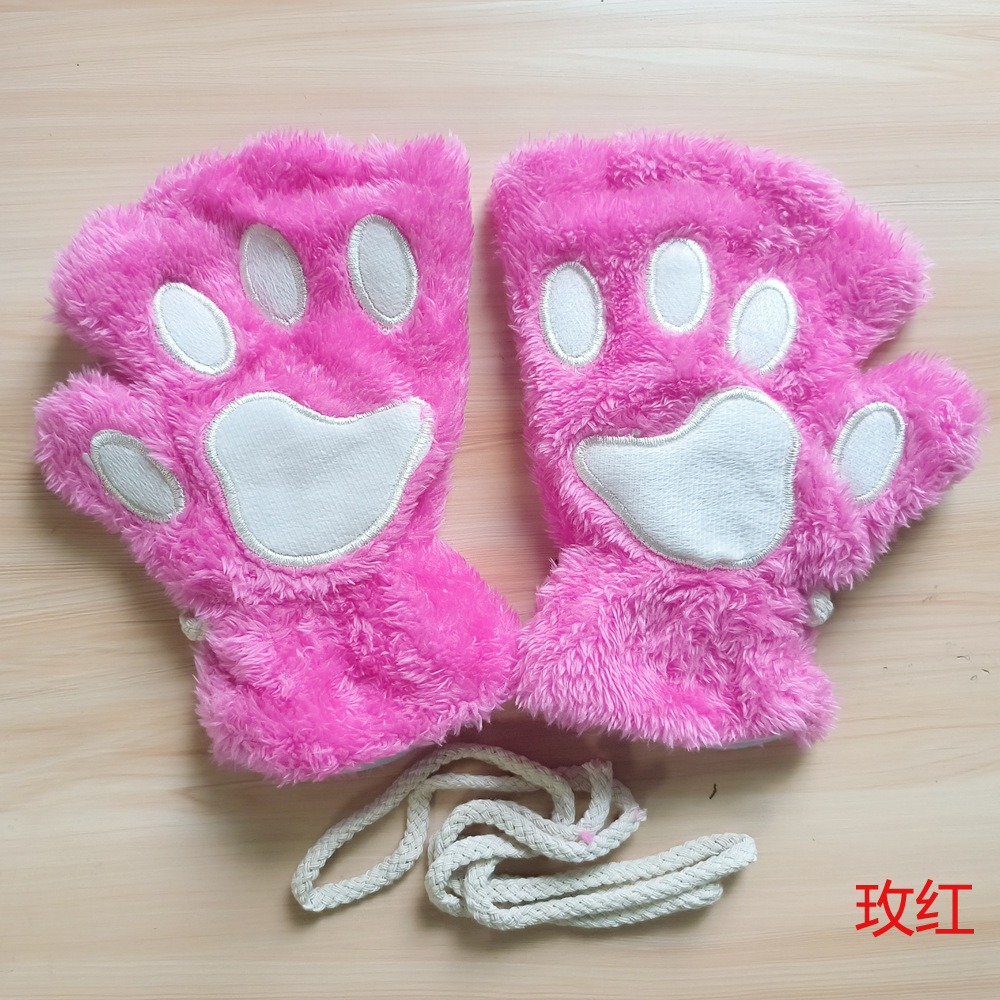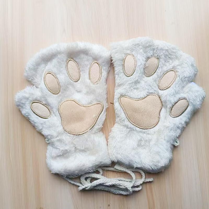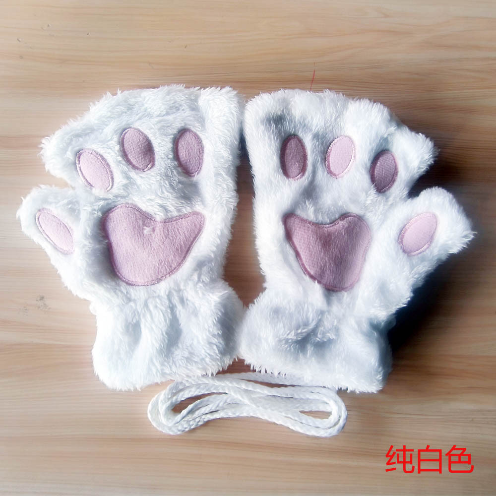겨울 귀여운 만화 고양이 소녀의 손가락 노출 고양이의 발톱 따뜻한 장갑 두꺼운 푹신한 곰의 발 반 손가락 장갑