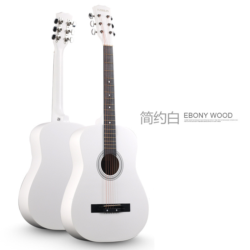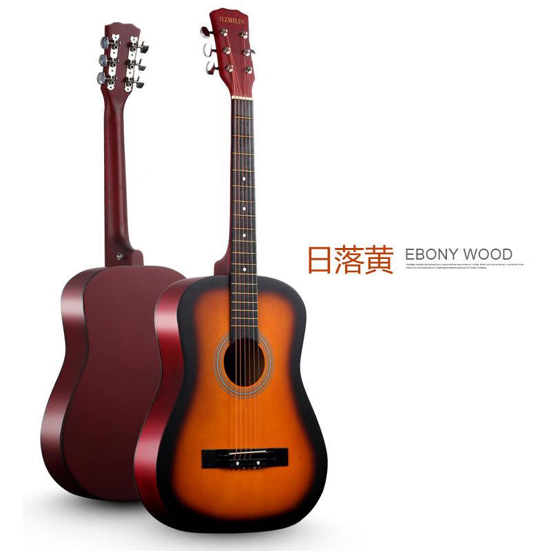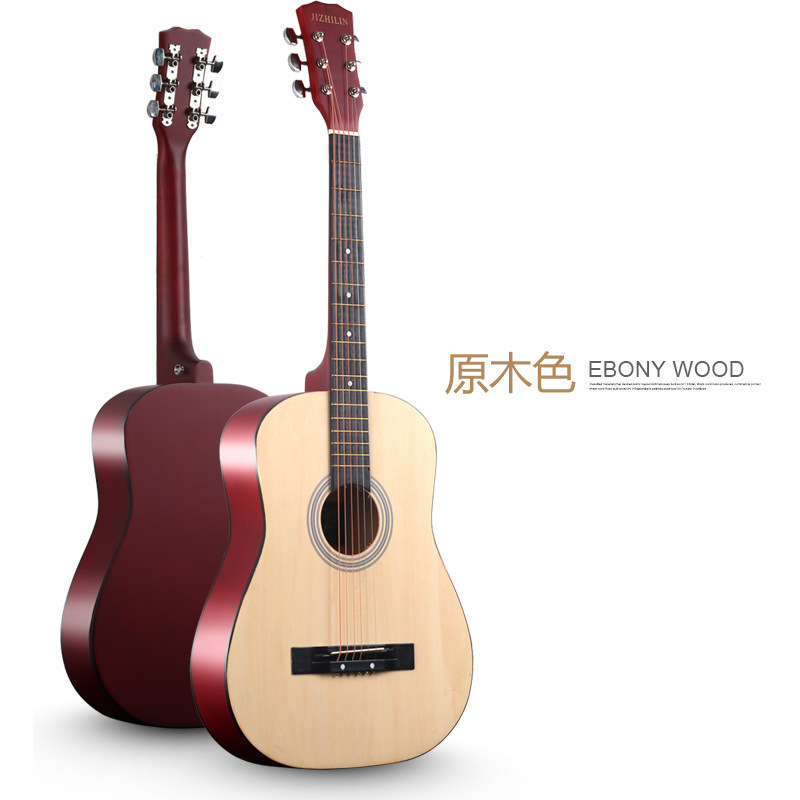 38inch 레트로 라운드 코너 포크 기타, 초보자용, 남녀학생용, 초급 악기, 참피나무 상판