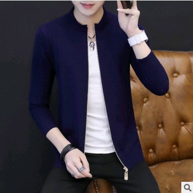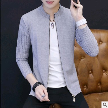2021 봄과 가을 새로운 한국 남성 니트웨어 단색 지퍼 슬림핏 패션 트렌디 가디건 재킷스토어 가기