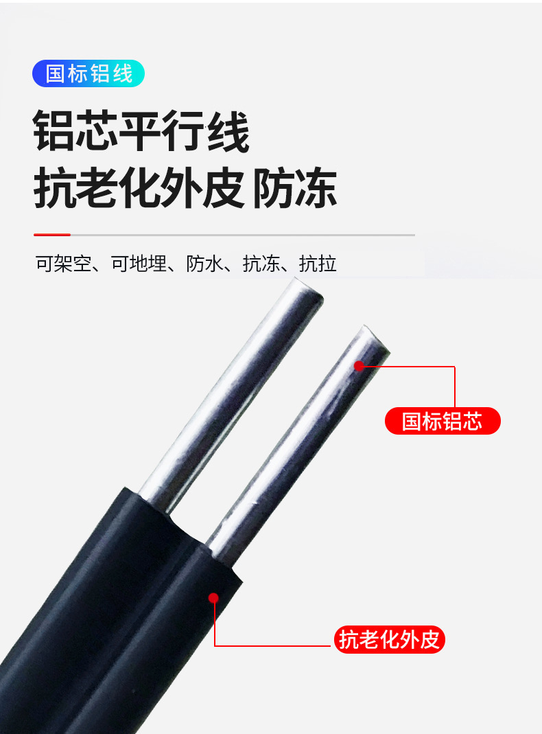 실외용 알루미늄 코어 전선 2심 10, 16 평방 알루미늄 전선 내한성, 내광성 및 노화 방지 평행 전원 코드스토어 가기