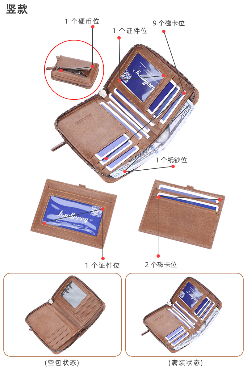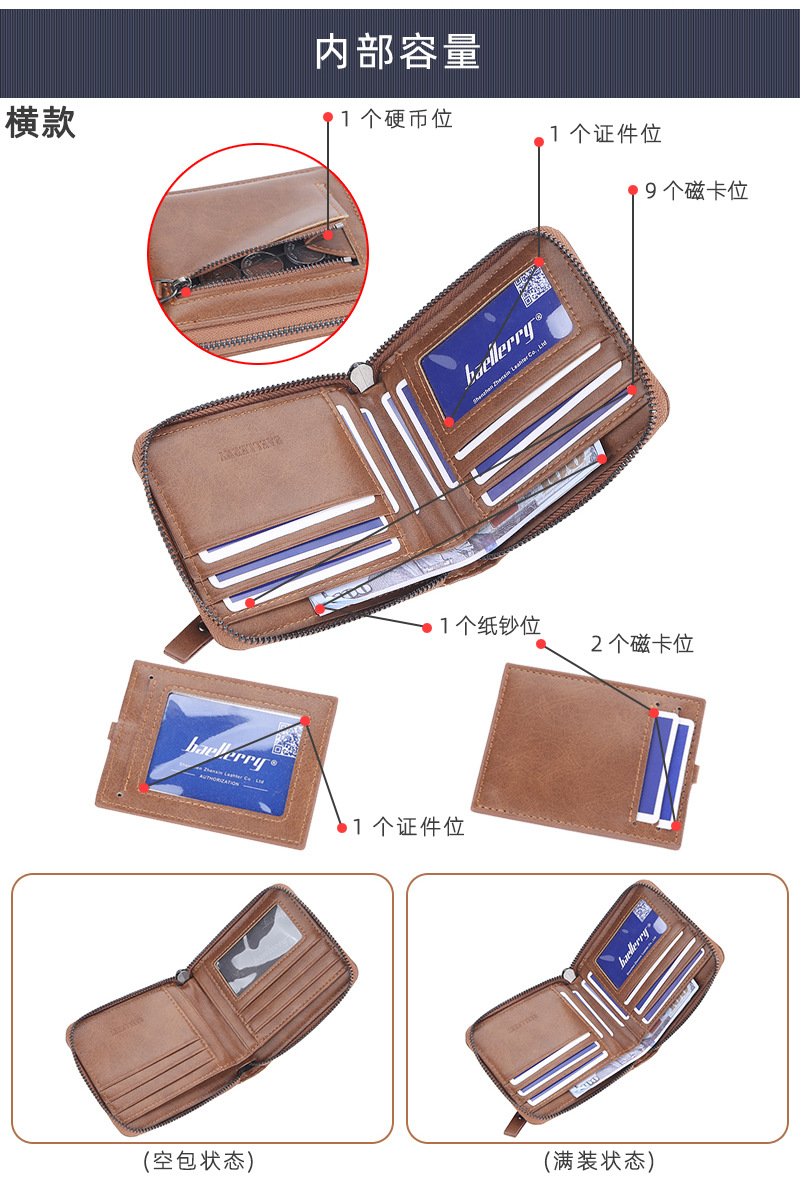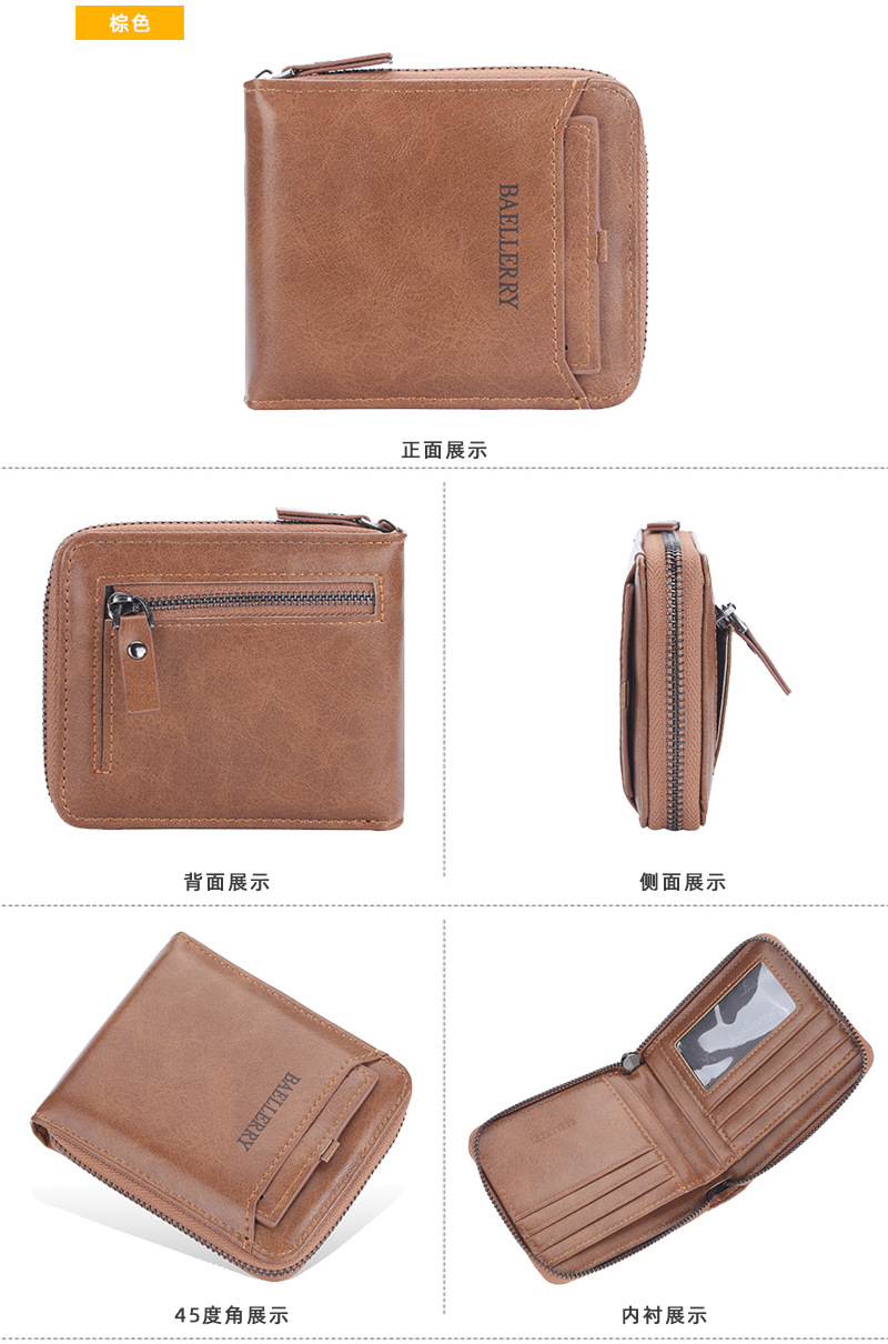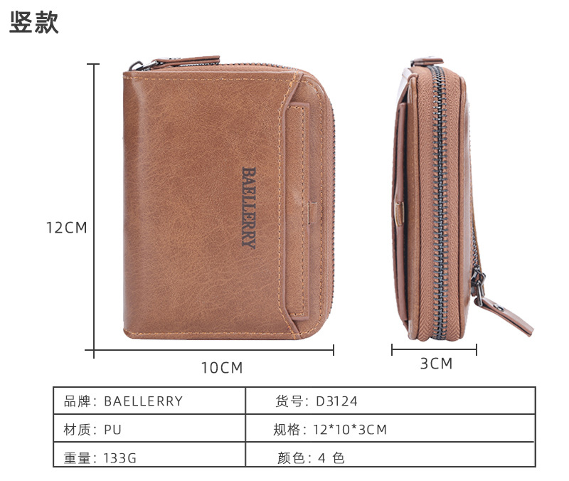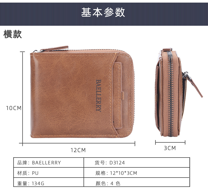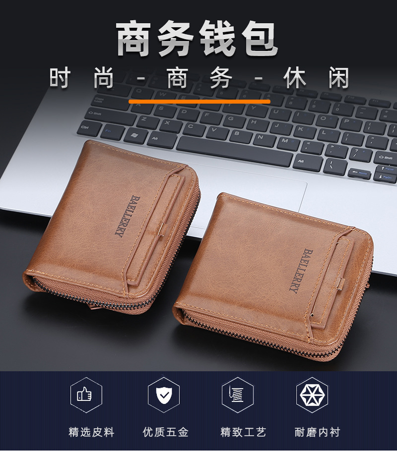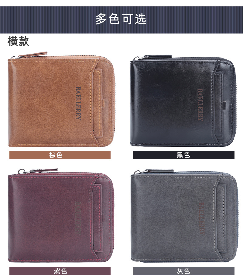 baellerry 크로스 보더 남성용 지갑 클립 하이 엔드 남성용 가로 지퍼 가방 카드 가방 지갑 대용량스토어 가기