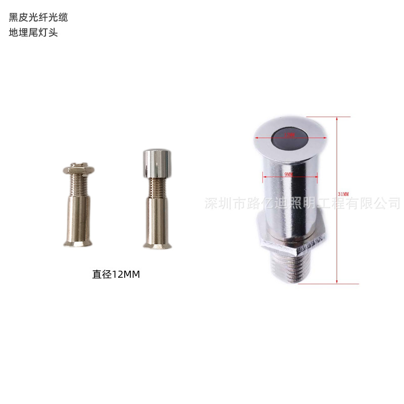12mm 묻힌 수중 램프 수족관 수중 램프 헤드 수상 풍경 조명 장식 램프 헤드 블랙 가죽 광학 케이블 테일 램프 헤드