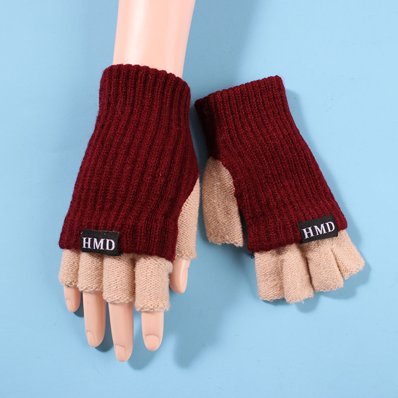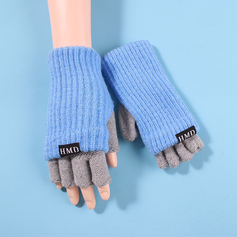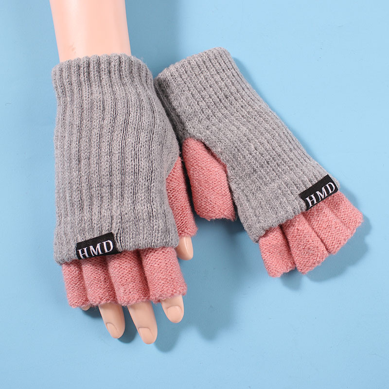 가을과 겨울 반 손가락 장갑 한국 여성의 니트 울 더블 레이어 따뜻한 학생 장갑 도매 재고 세대