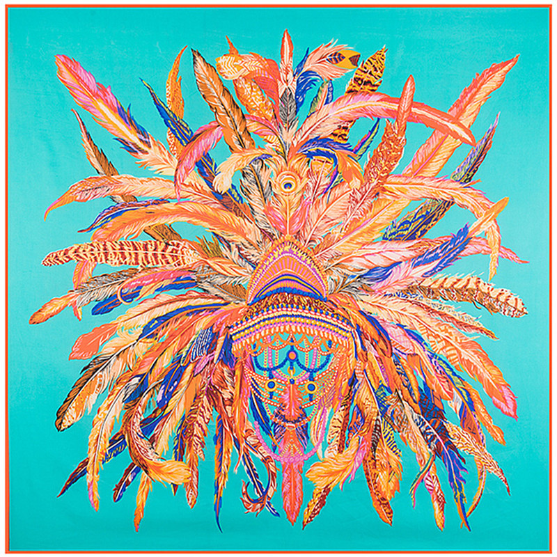 유럽과 미국의 새로운 대외 무역 실크 스카프 능 직물 새틴 여성용 130cm 대형 사각 깃털 크라운 인쇄 숄 스카프