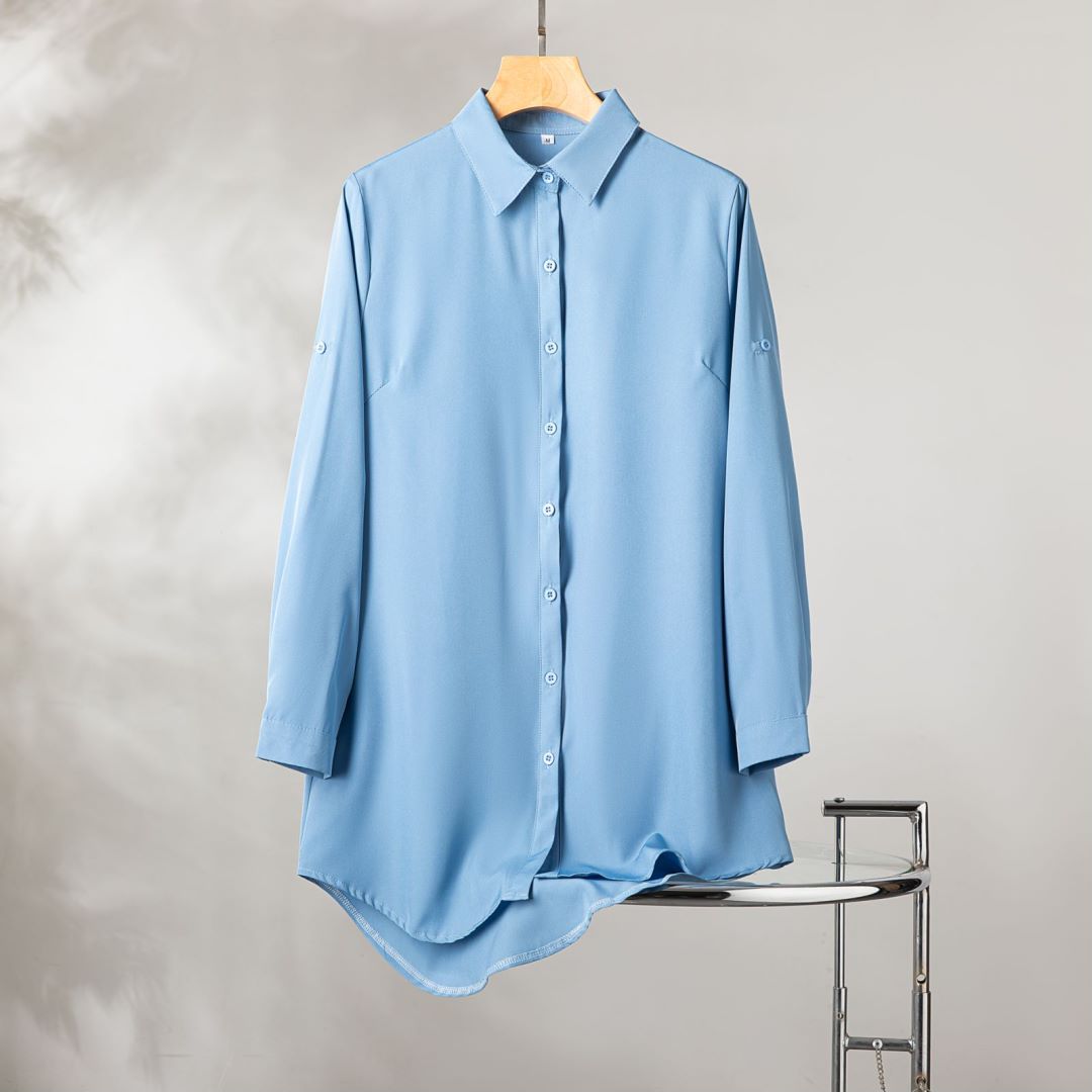 韩版宽松中长款女式白衬衫秋现货休闲性感纯色长袖衬衣女雪纺上衣 RMB:17.00