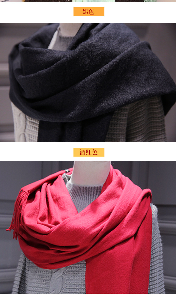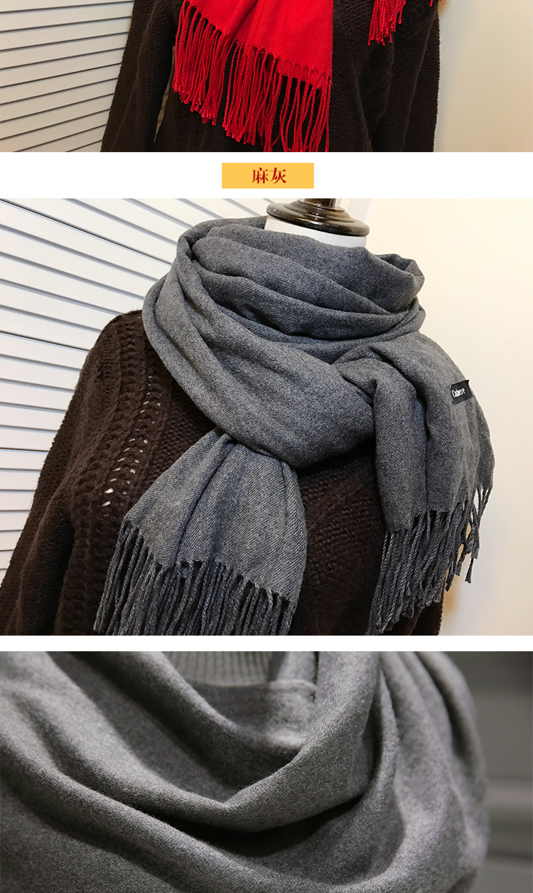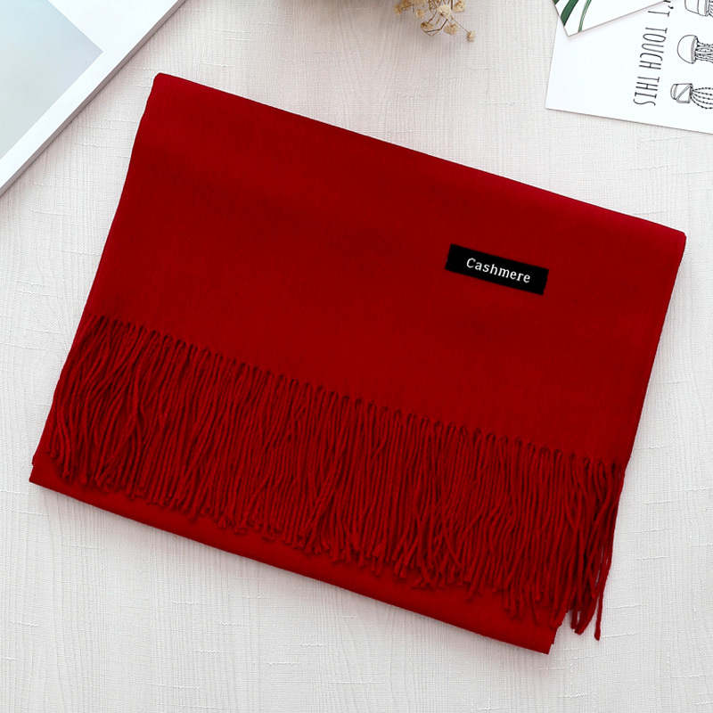 캐시미어 스카프 도매 단색 캐시미어 따뜻한 빨간색 연간 스카프 여성 겨울 네이비 술 숄