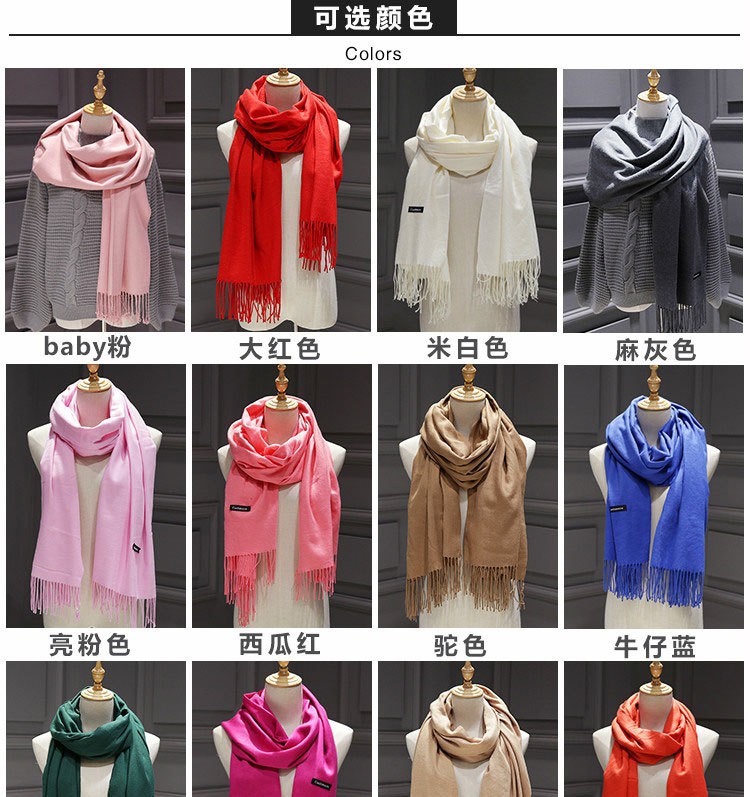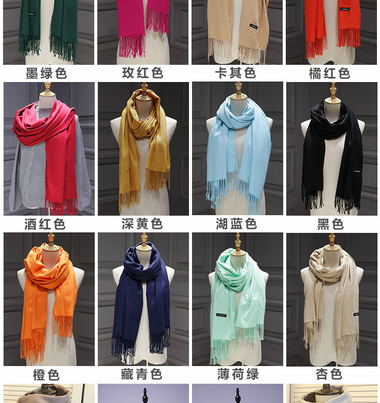 캐시미어 스카프 도매 단색 캐시미어 따뜻한 빨간색 연간 스카프 여성 겨울 네이비 술 숄스토어 가기