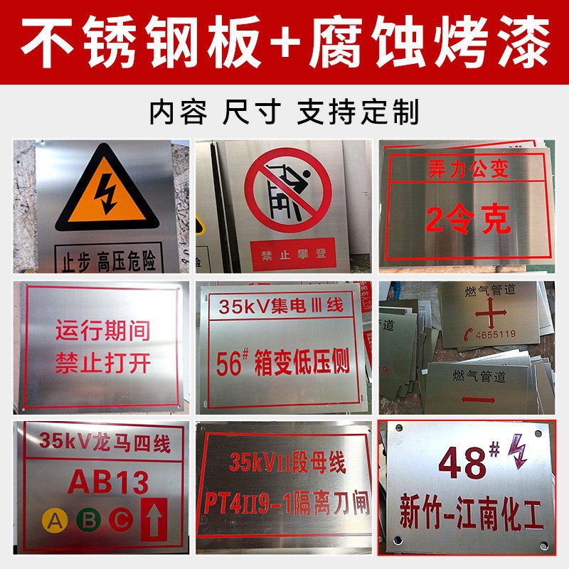购物续知:厂家定制定做各类铝反光标志牌,UV打印标志牌,腐蚀标志牌,PVC标志牌,阀门标志牌,交通/限速标志牌,电力标志牌,消防标志牌,钛金标志牌,双色板标志牌,相序牌,杆号牌,搪瓷牌,制度牌,等各类材质类型标志牌,一件也发货,可开发票,满足您的需求,另有其它需求要求的,请联系咨询客服!