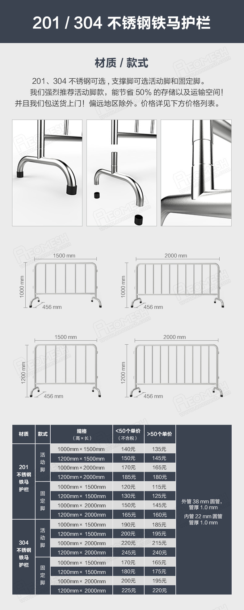 盛远洋 专业生产厂家推荐 加工定制201/304不锈钢铁马/路障 现货租赁出售