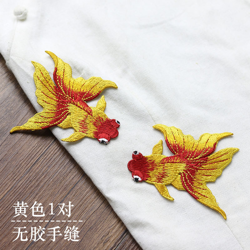 의류 스티커 패치 금붕어 자수 에스닉 스타일 대칭 천 스티커 DIY 클래식 장식 액세서리 보석 손으로 스티치스토어 가기