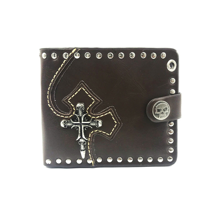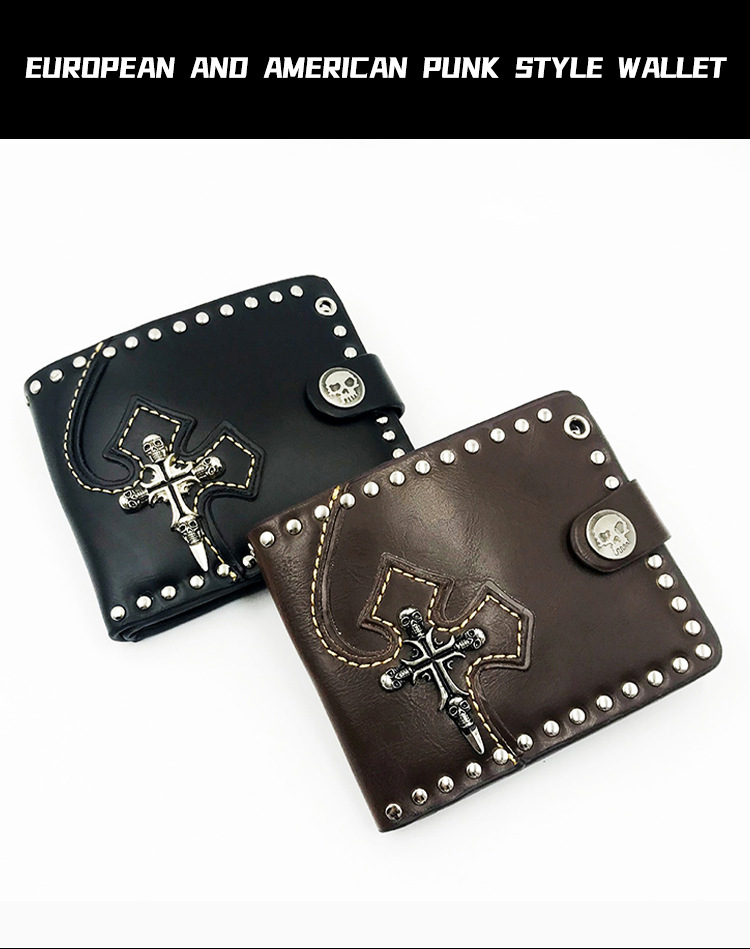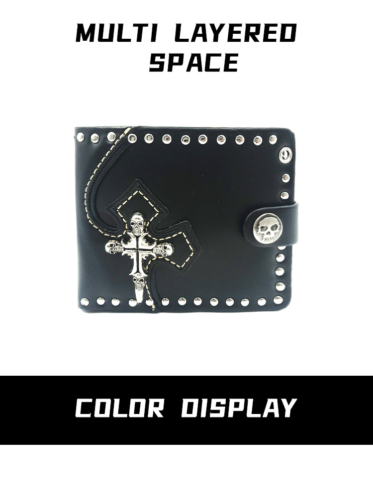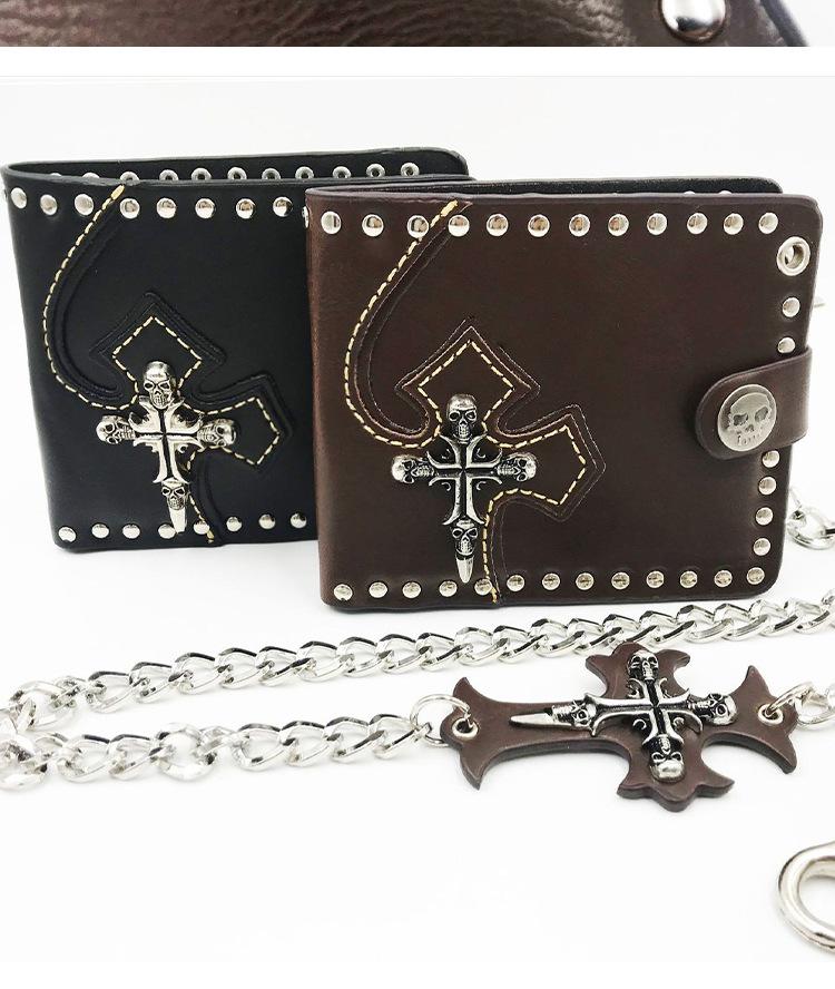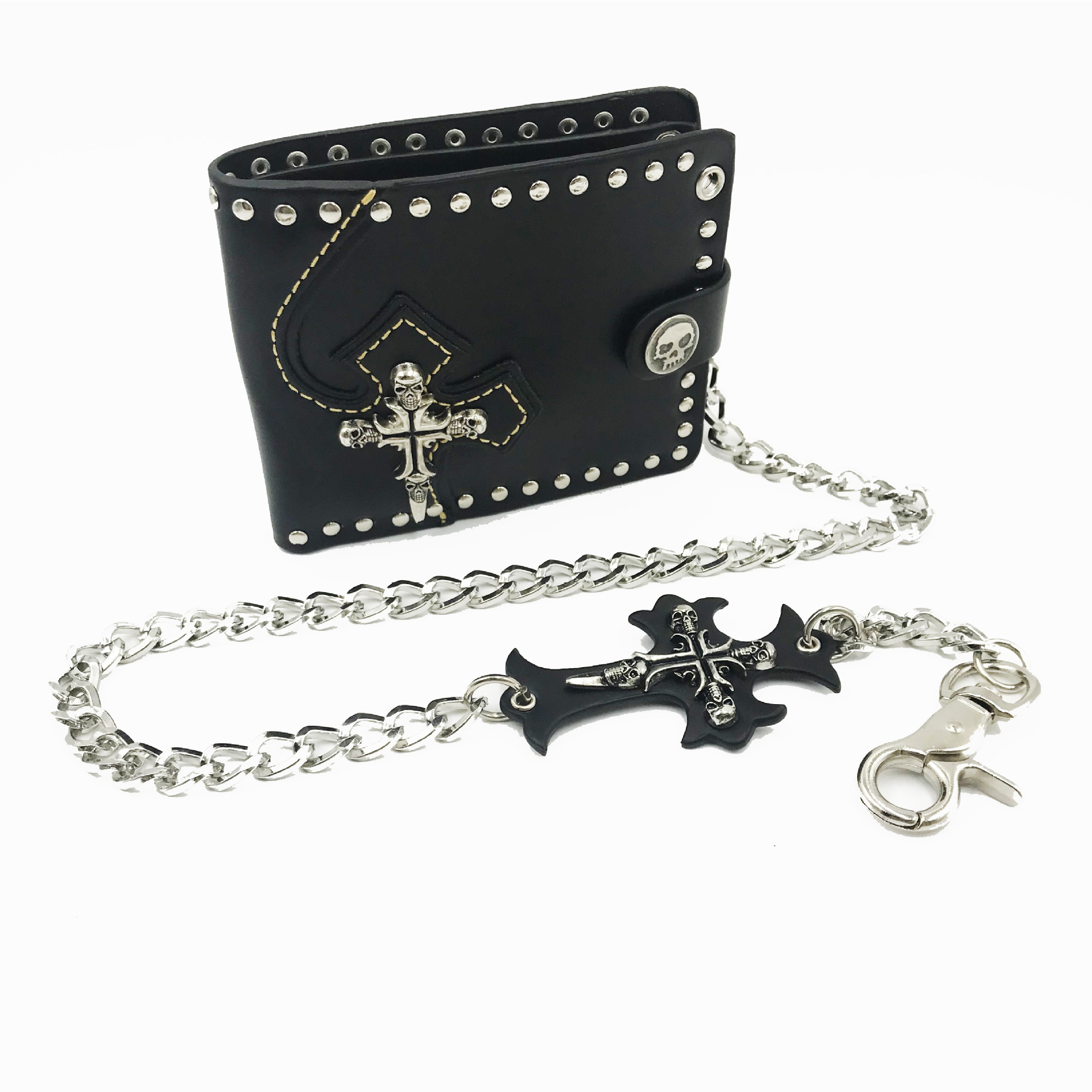 펑크 남자의 오토바이 지갑 고딕 재고 해골 지갑 아마존 크로스 체인 지갑