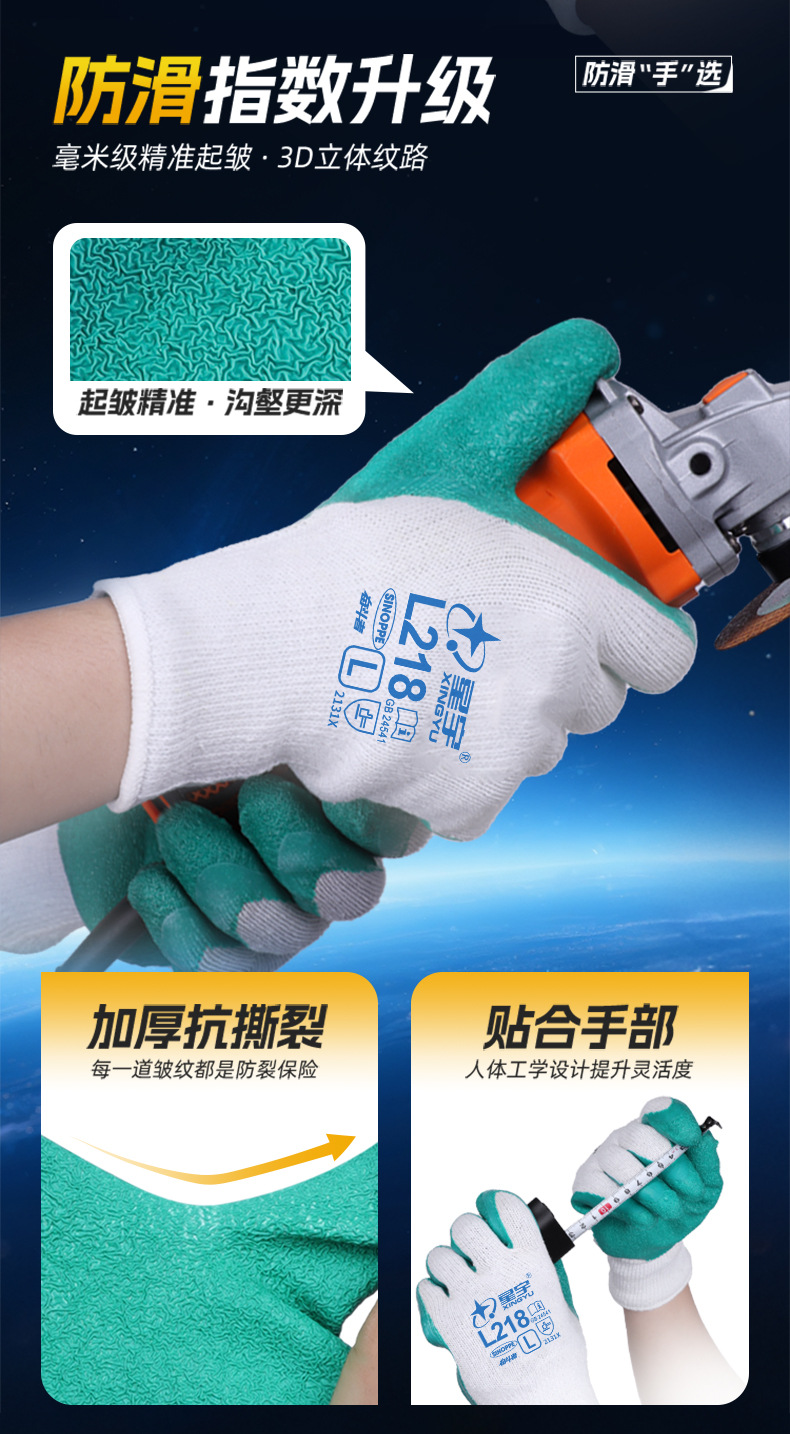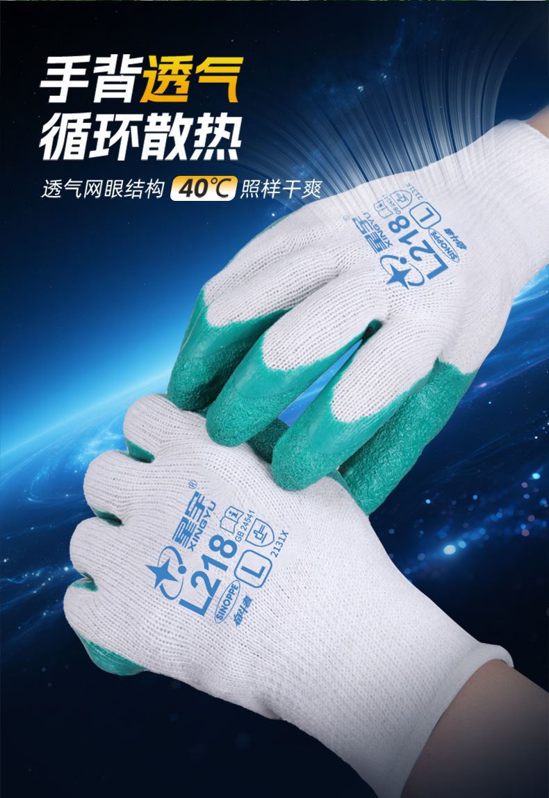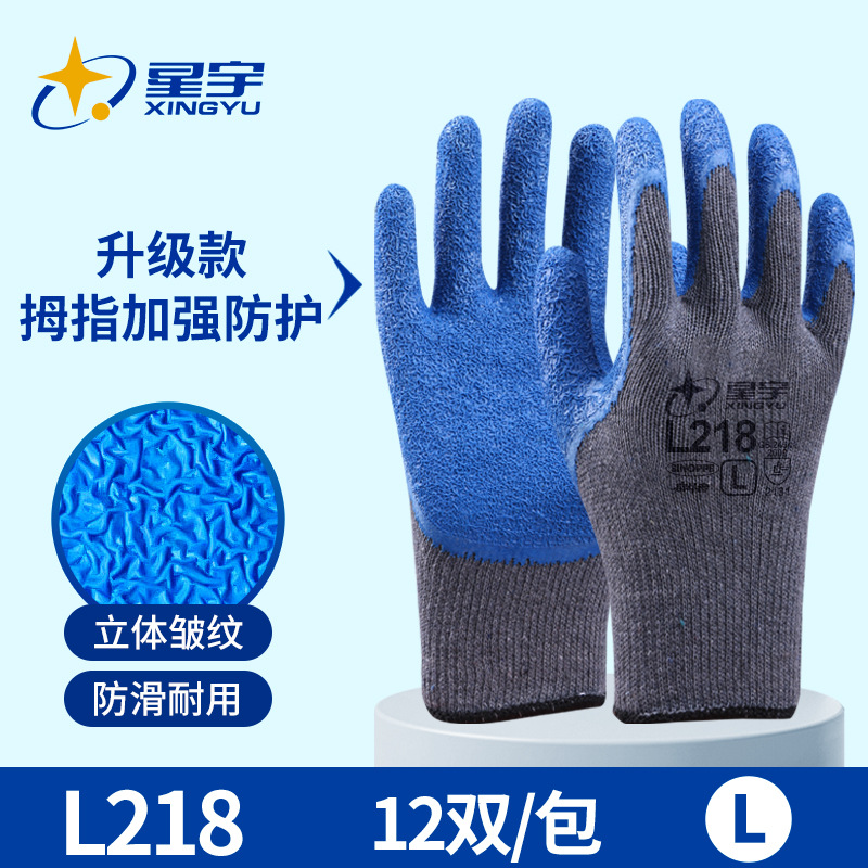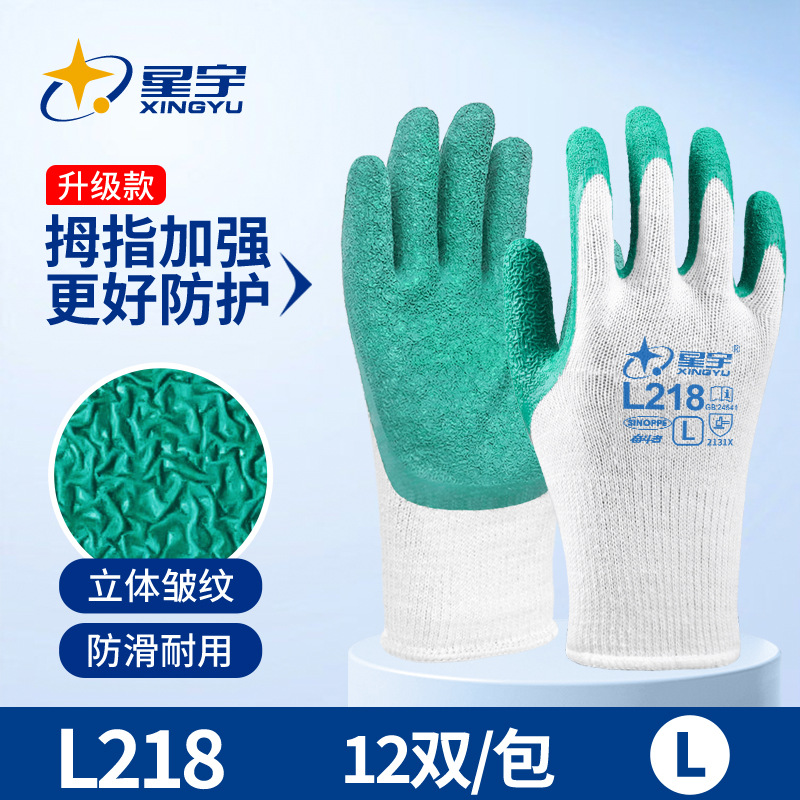 성유 노동보호장갑 L218 주름형 고무코팅 미끄럼 방지 내마모성 건설 현장 기계 산업 노동 보호 다용도스토어 가기