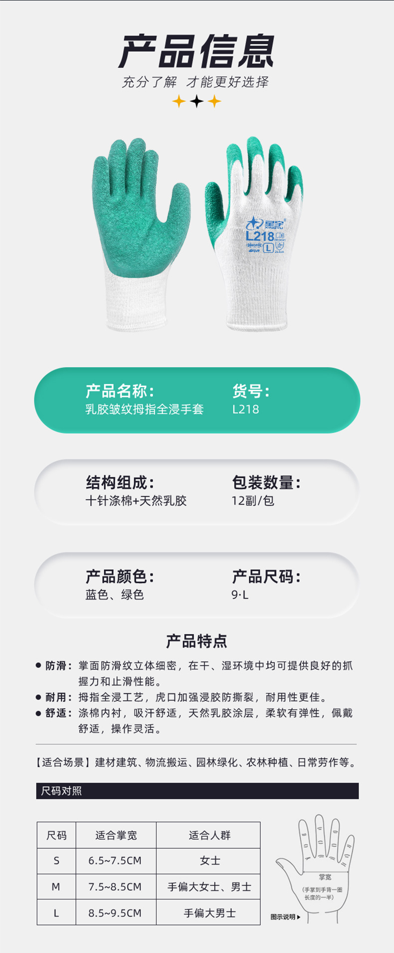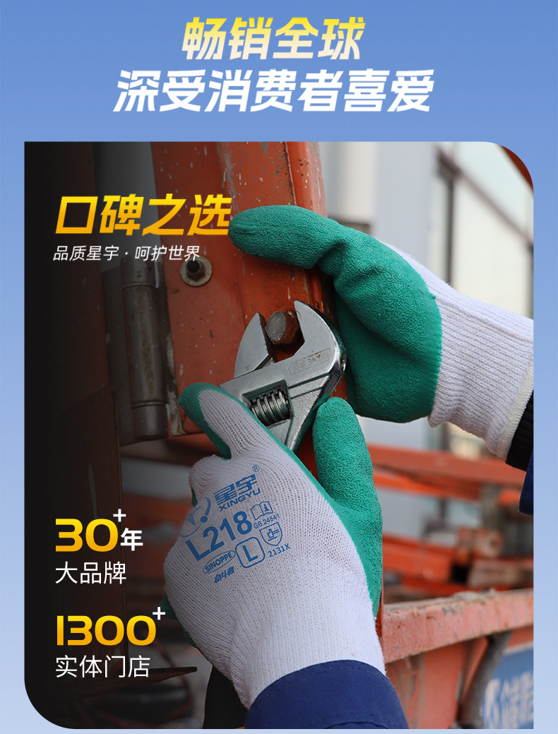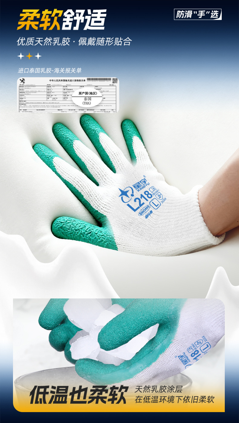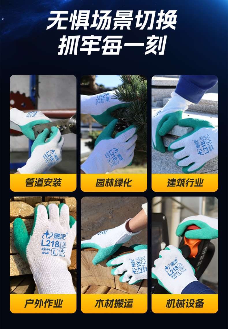 성유 노동보호장갑 L218 주름형 고무코팅 미끄럼 방지 내마모성 건설 현장 기계 산업 노동 보호 다용도스토어 가기