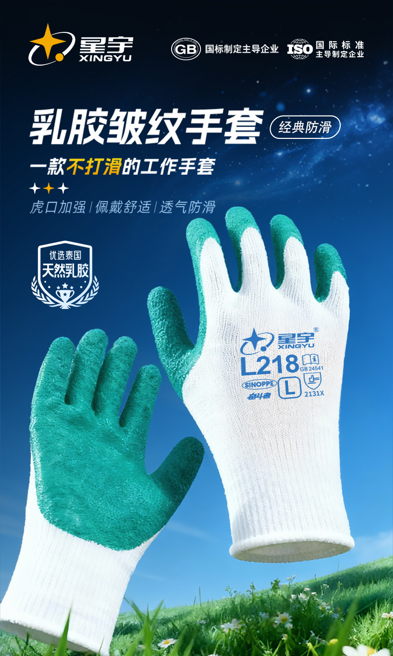 성유 노동보호장갑 L218 주름형 고무코팅 미끄럼 방지 내마모성 건설 현장 기계 산업 노동 보호 다용도