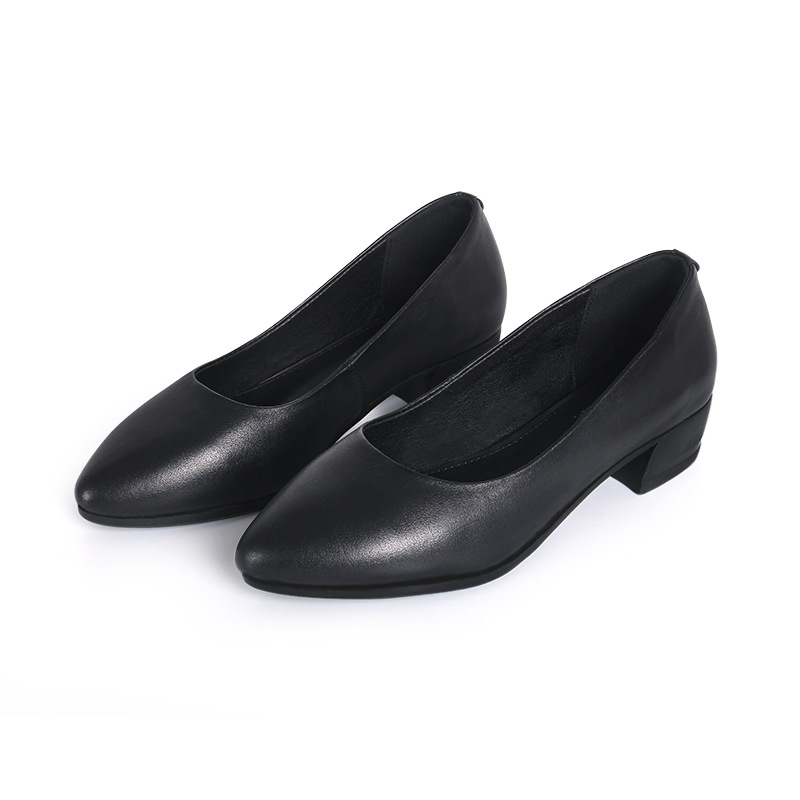 2025 봄 여성용 소프트솔 포인티드 토 작업화, 블랙 두꺼운 굽의 펌프스, 여성용 스튜어디스 전문직 작업화스토어 가기