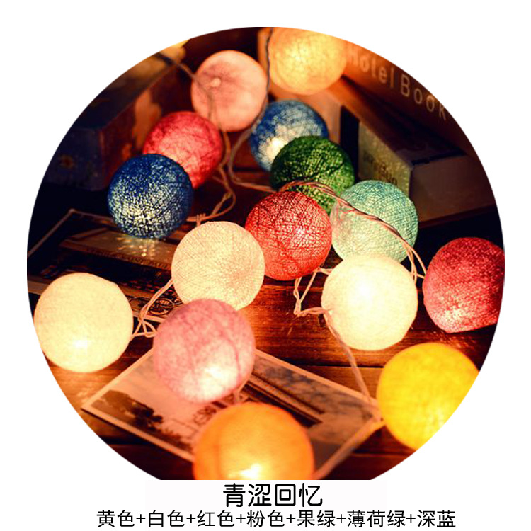 창조적 인 수제 코튼 볼 led 라이트 스트링 태국 공 컬러 라이트 장식 룸 기숙사 유물 크리스마스 라이트 스트링