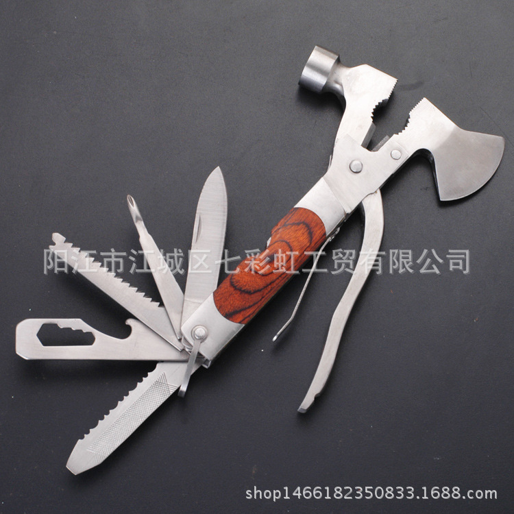 【产品功能】斧头,锤子,平嘴钳,切线钳,小刀,十字螺丝刀,开瓶器,单牙刀,平锉,外六角板手