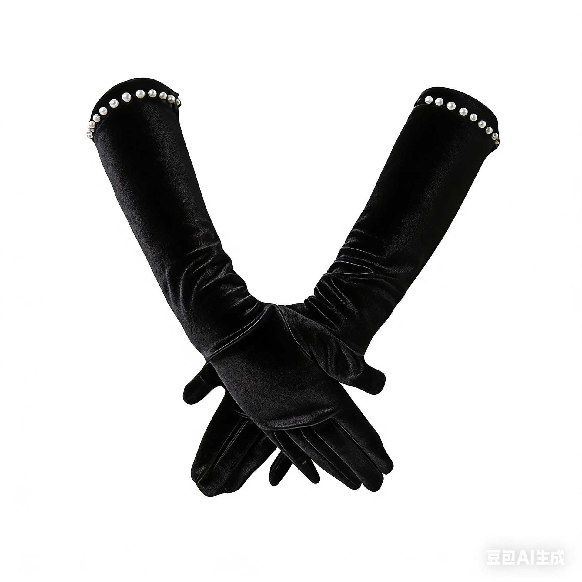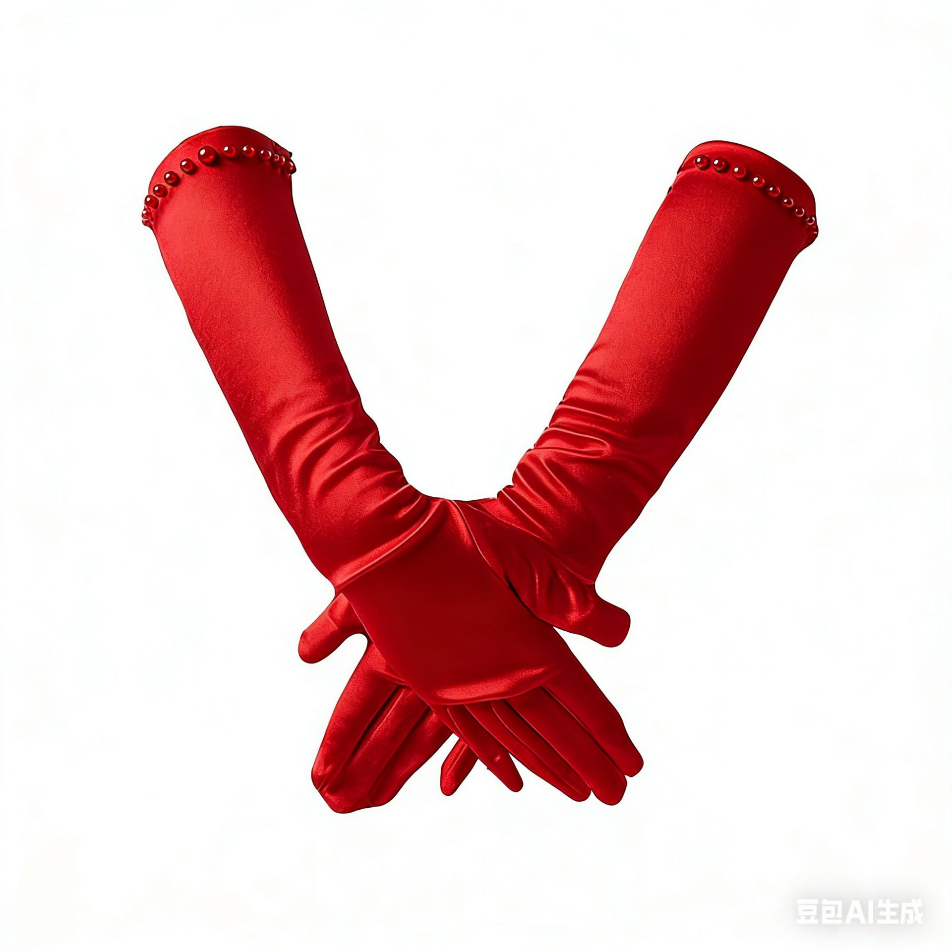 • 로즈 레드 장갑 흰 구슬