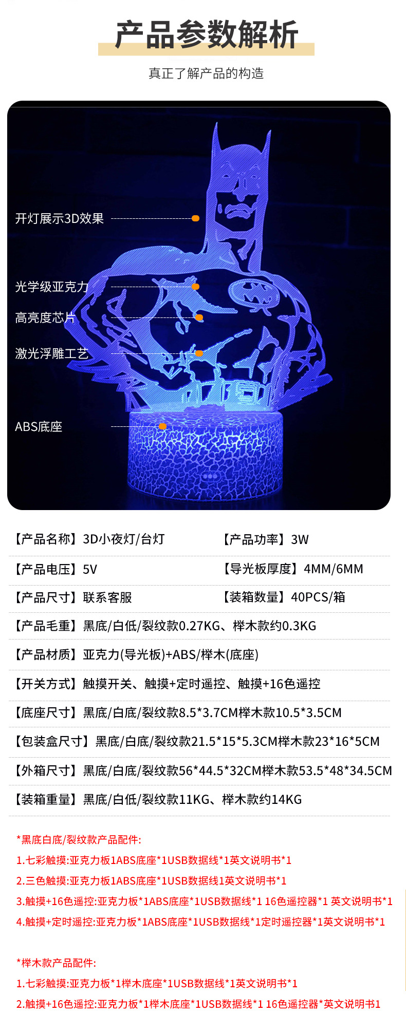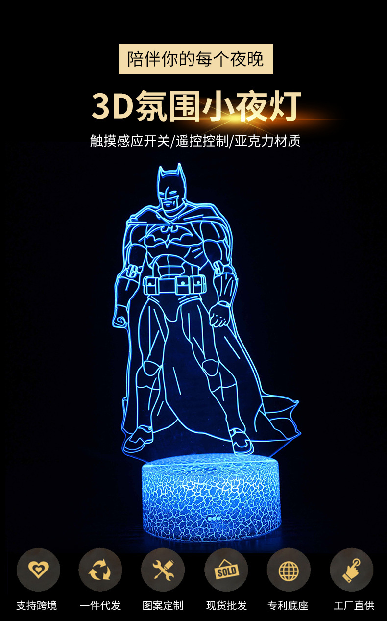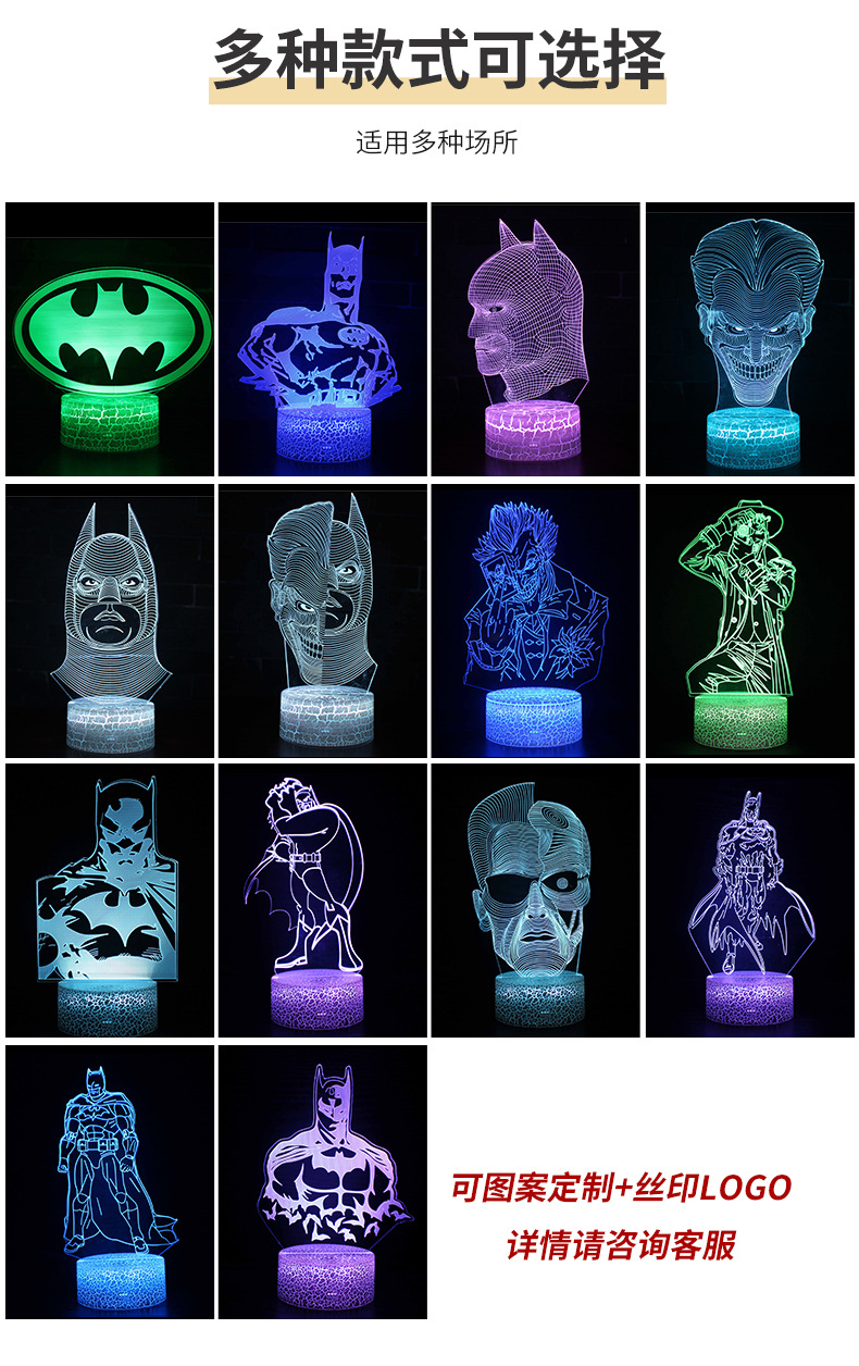 배트맨 잭 시리즈 전용 크로스 보더 3D 테이블 램프 LED 램프 창조적 인 선물 비주얼 3 차원 다채로운 야간 조명