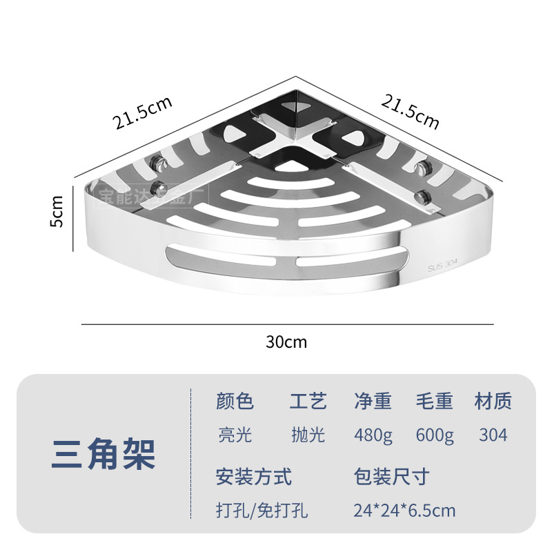 엔지니어링 호텔 욕실 삼각대 두꺼운 304 스테인레스 스틸 삼각형 바구니 샤워 룸 코너 스토리지 랙