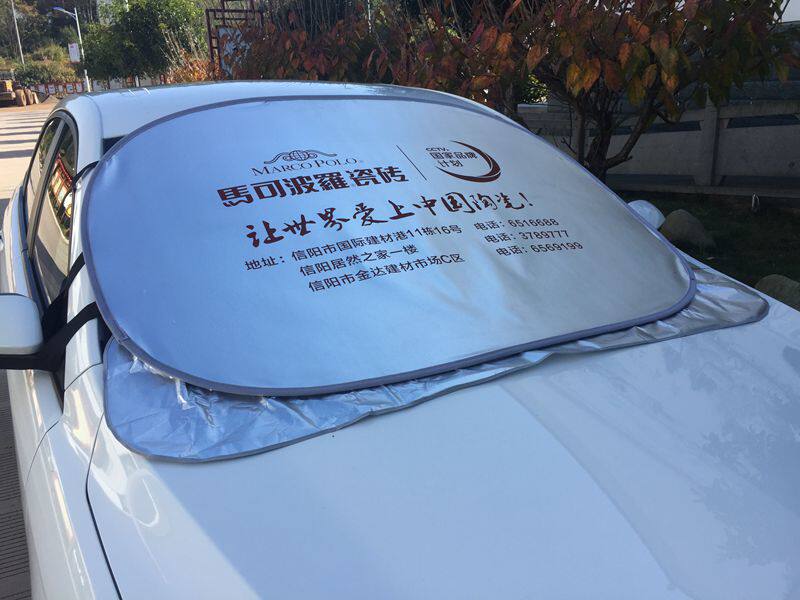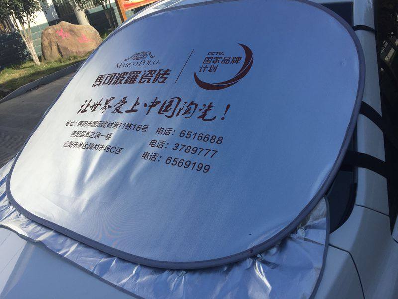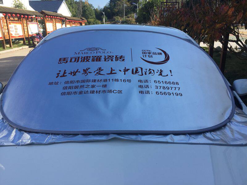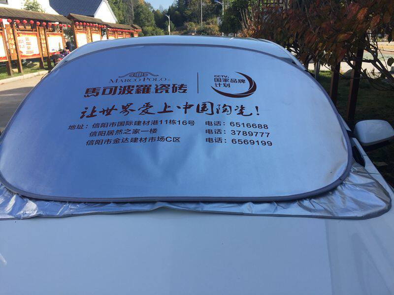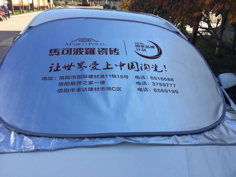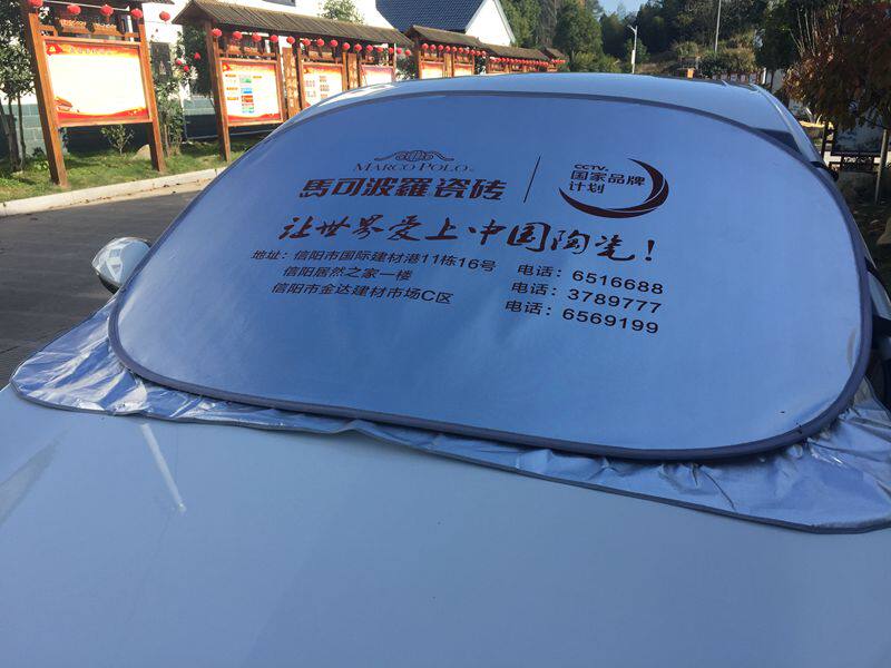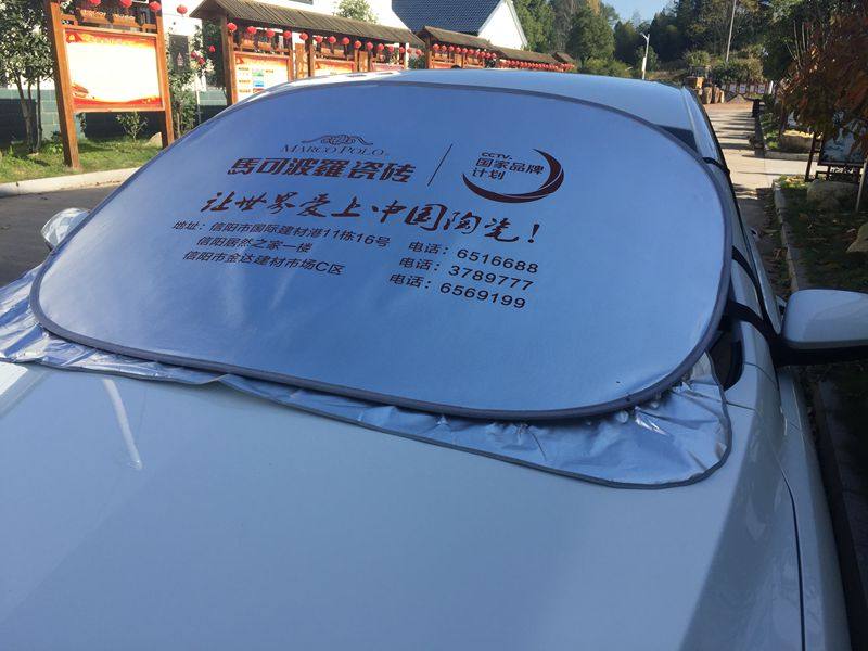产品性能:有效的遮太阳光,使车内清凉舒适,从而保护爱车的仪表台、座椅、塑料部分不会因为阳光的照射而变质老化,更是广告礼品的理想选择