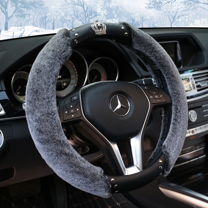 아마존 다이아몬드 핸들 커버 자동차 핸들 커버 크라운 토끼 모피 핸들 커버 겨울 따뜻한 핸들 커버 봉제 핸들 커버